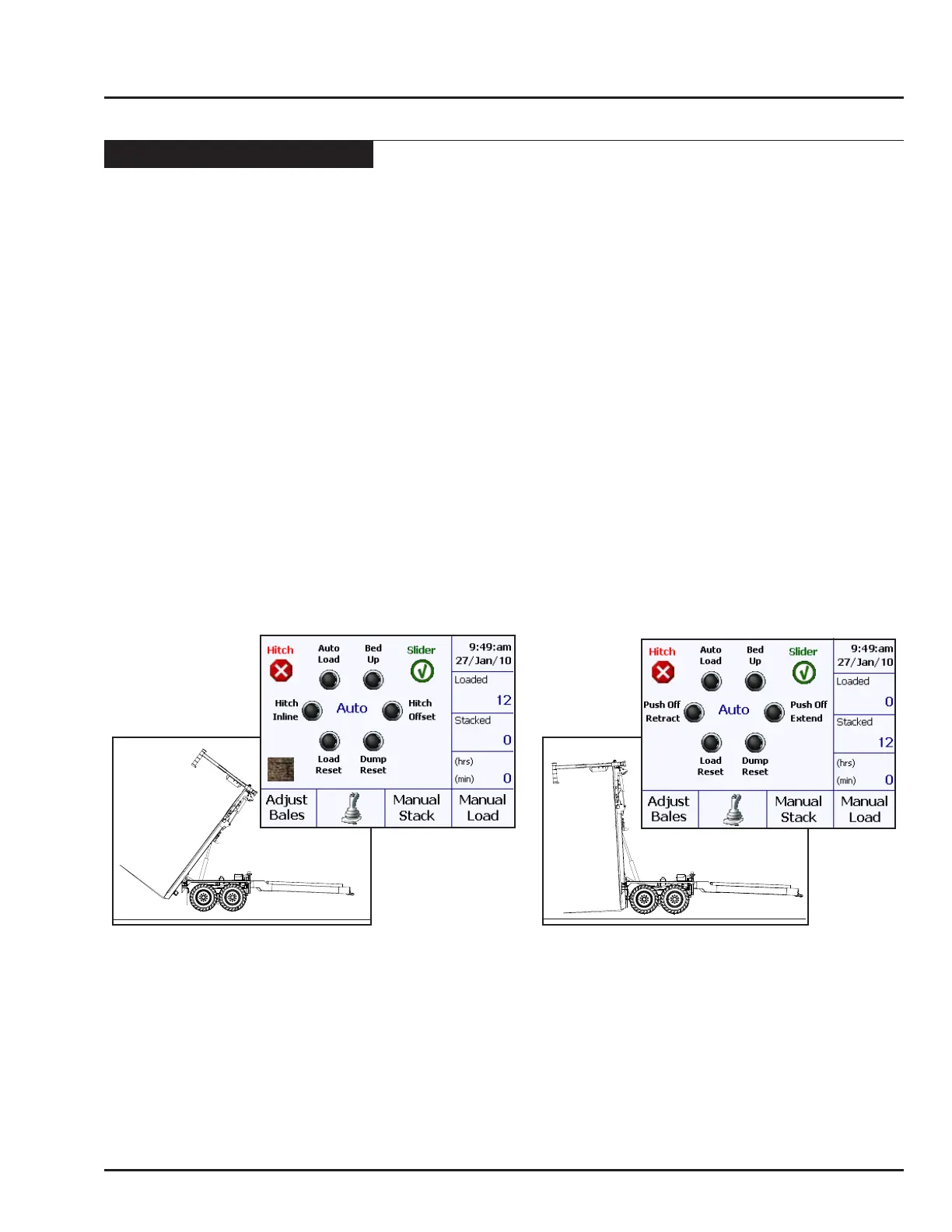 bales has been stacked, pressing the Hitch Offset button will stop the hitch from moving inline.