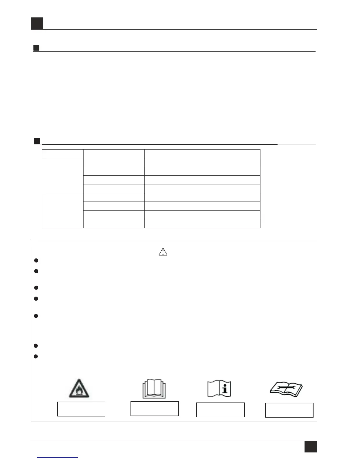 comply with the following table to install your air conditioner in a room with an appropriate area