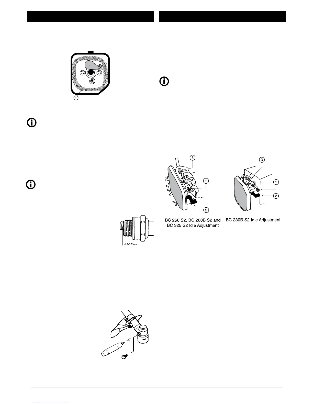 the engine is idling (not applicable to the BC 230B S2 model), or if