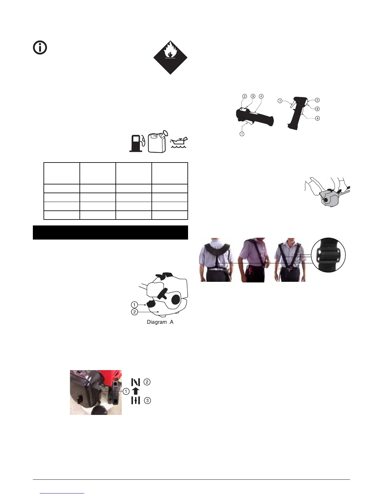 - Squeeze the throttle lever (1) fully.Hold down the starting