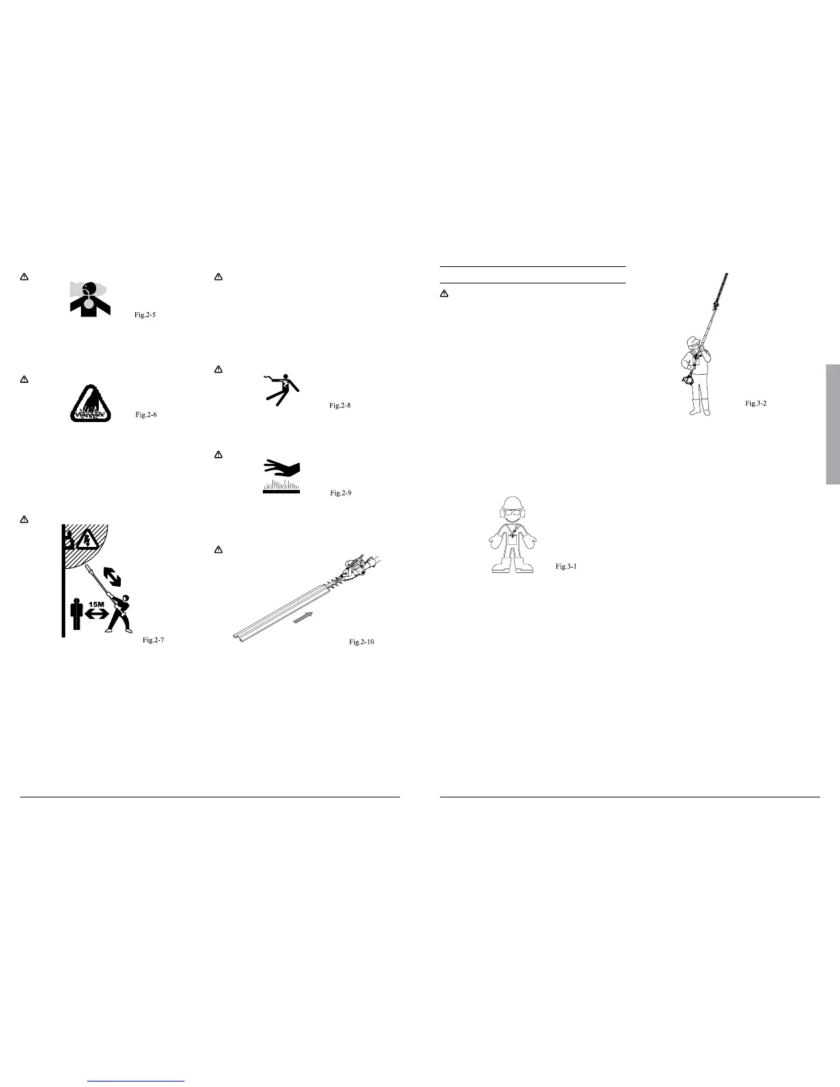 • Keep the working end of the machine at least 15 m away from