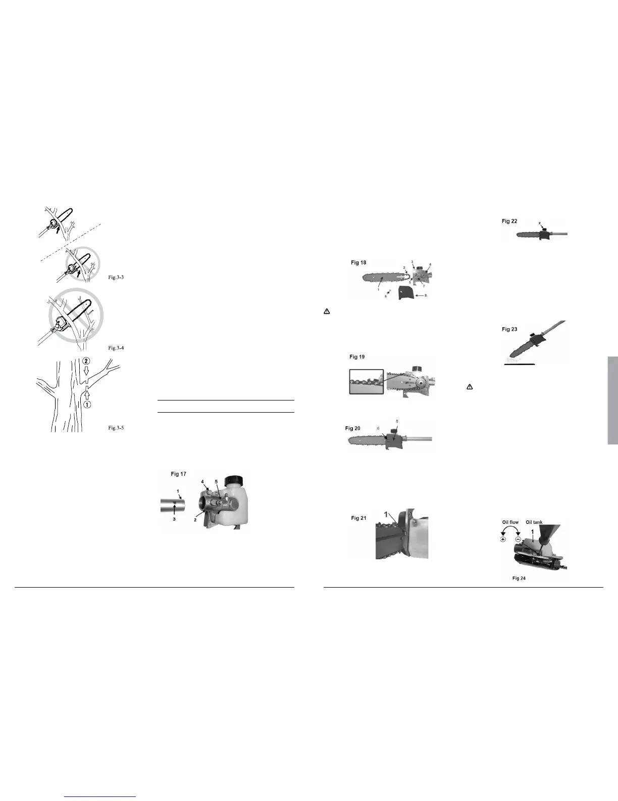 Pay attention to the correct direction of the saw chain Fig 19.