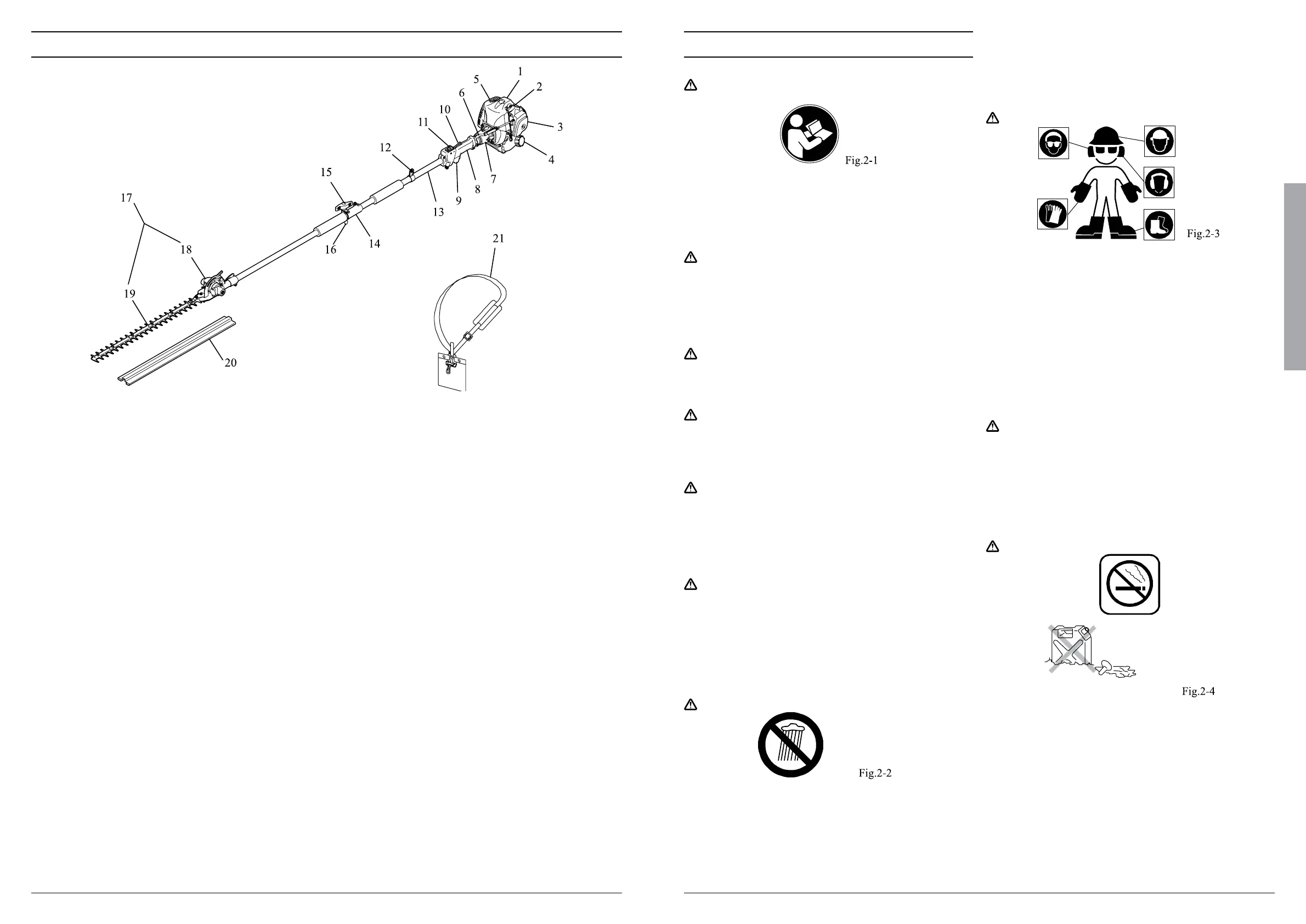 Use the pole hedge trimmer only to trim hedges or cut twigs no