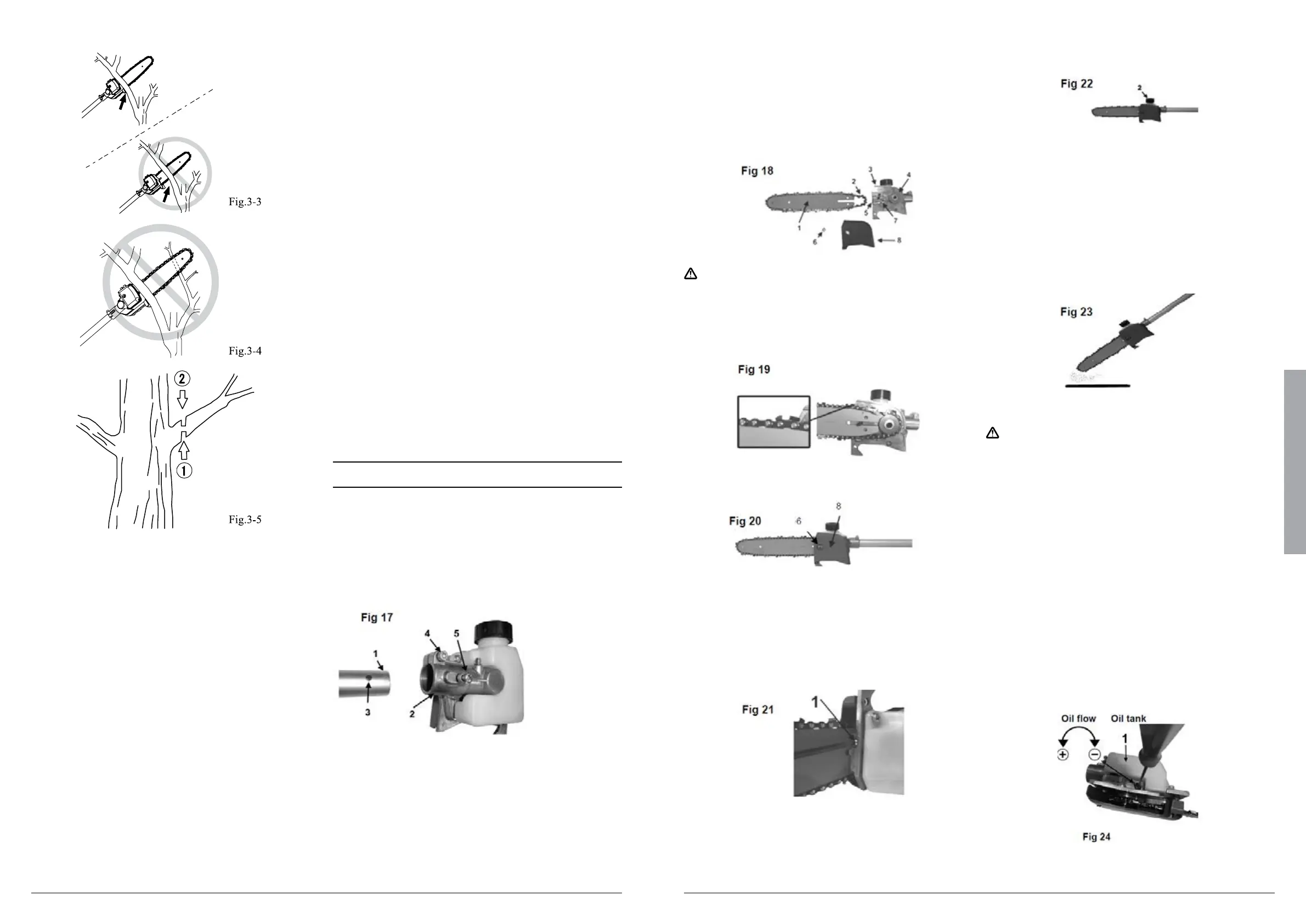 Pay attention to the correct direction of the saw chain Fig 19.