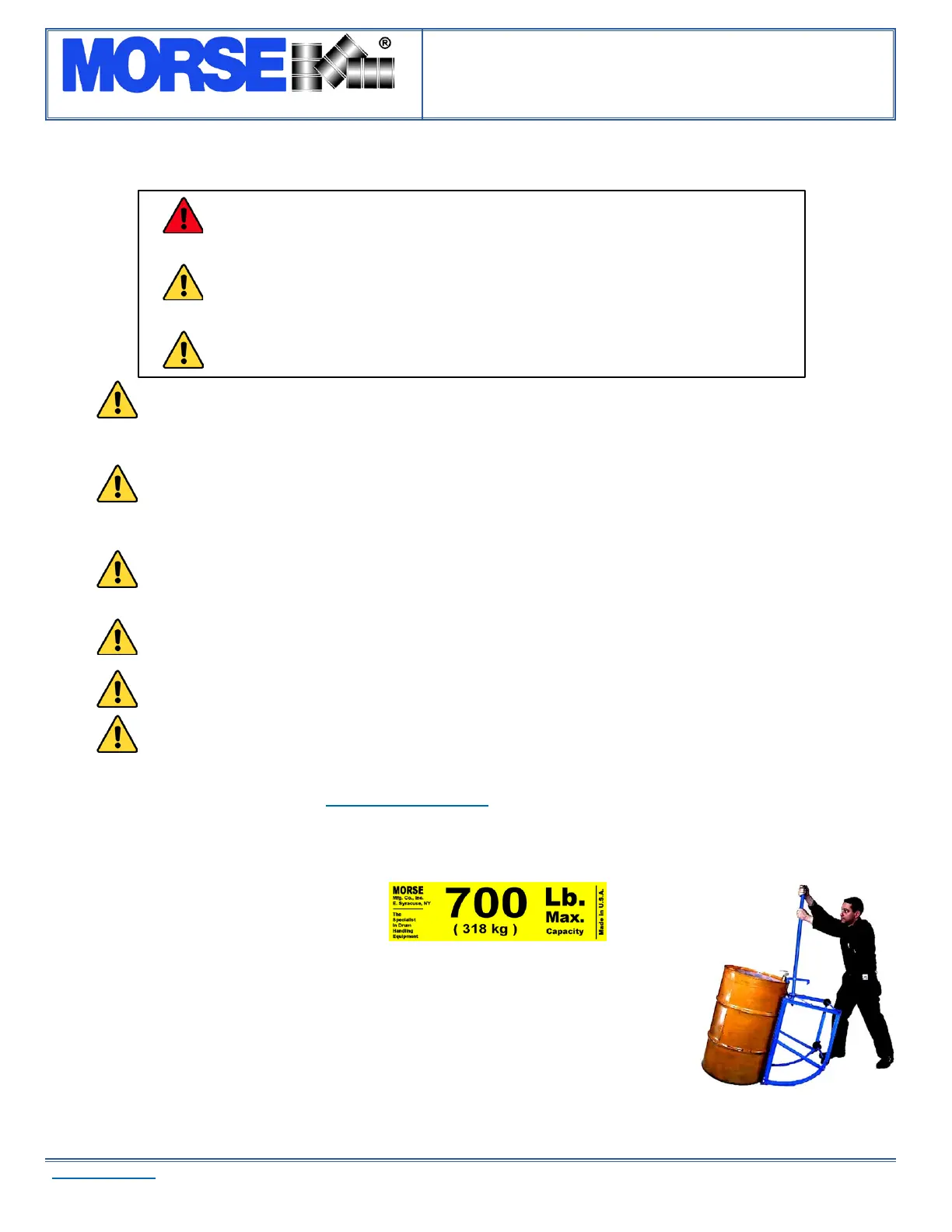 WARNING - The Drum Cradle Truck is designed to handle one drum of the types listed below under Machine