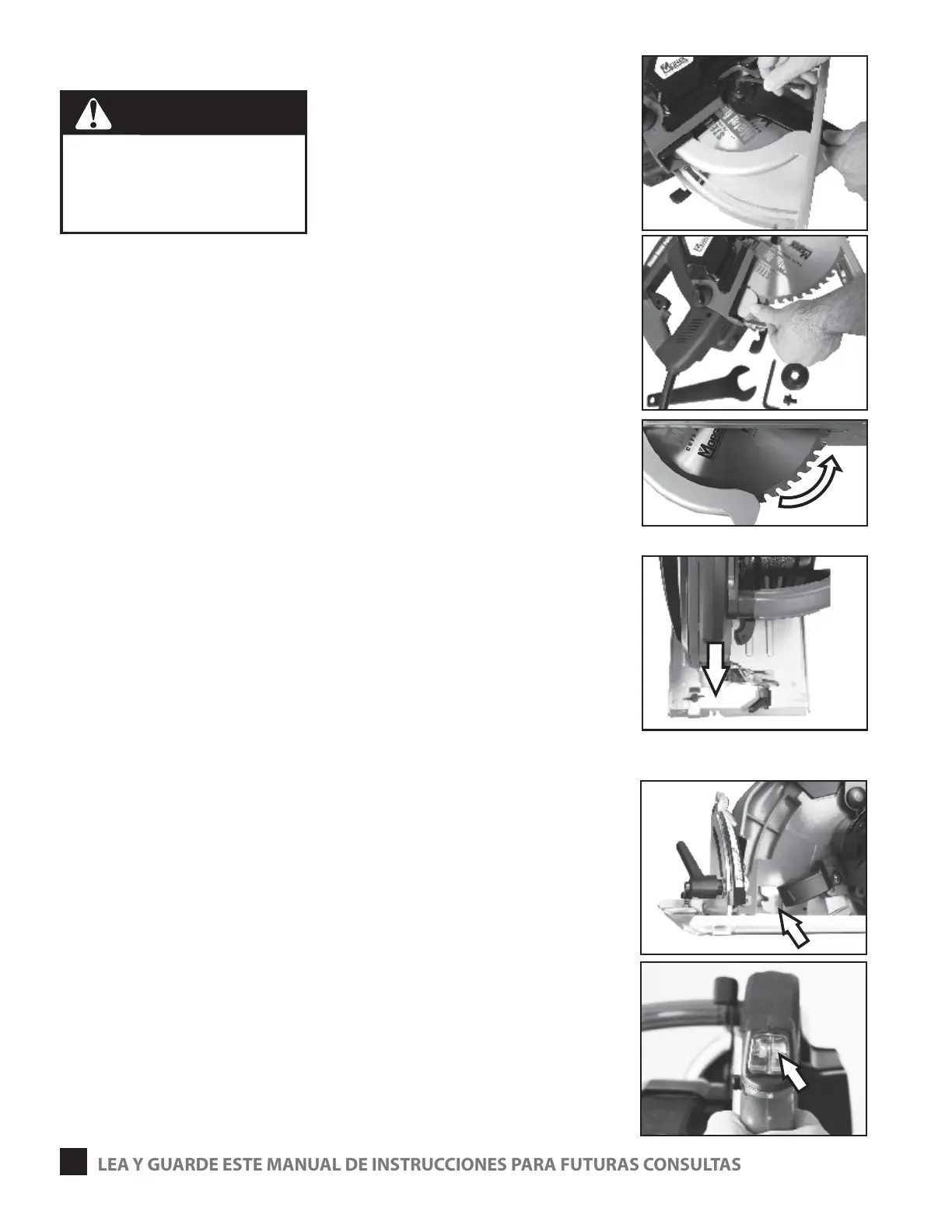 Nunca conecte la sierra al tomacorriente
