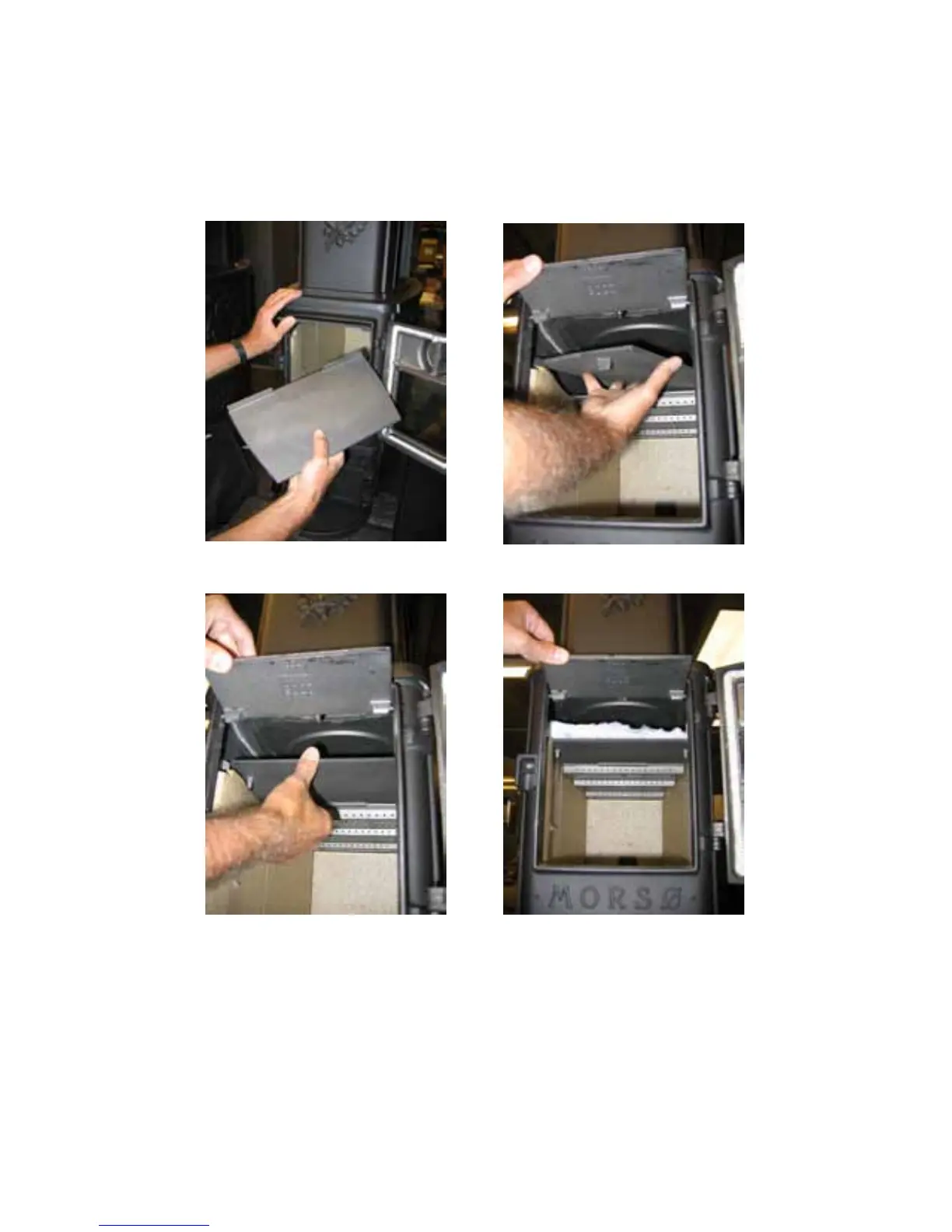 Lead the vertical baffle through the door as shown below (picture 1 & 2). Place the baffle into