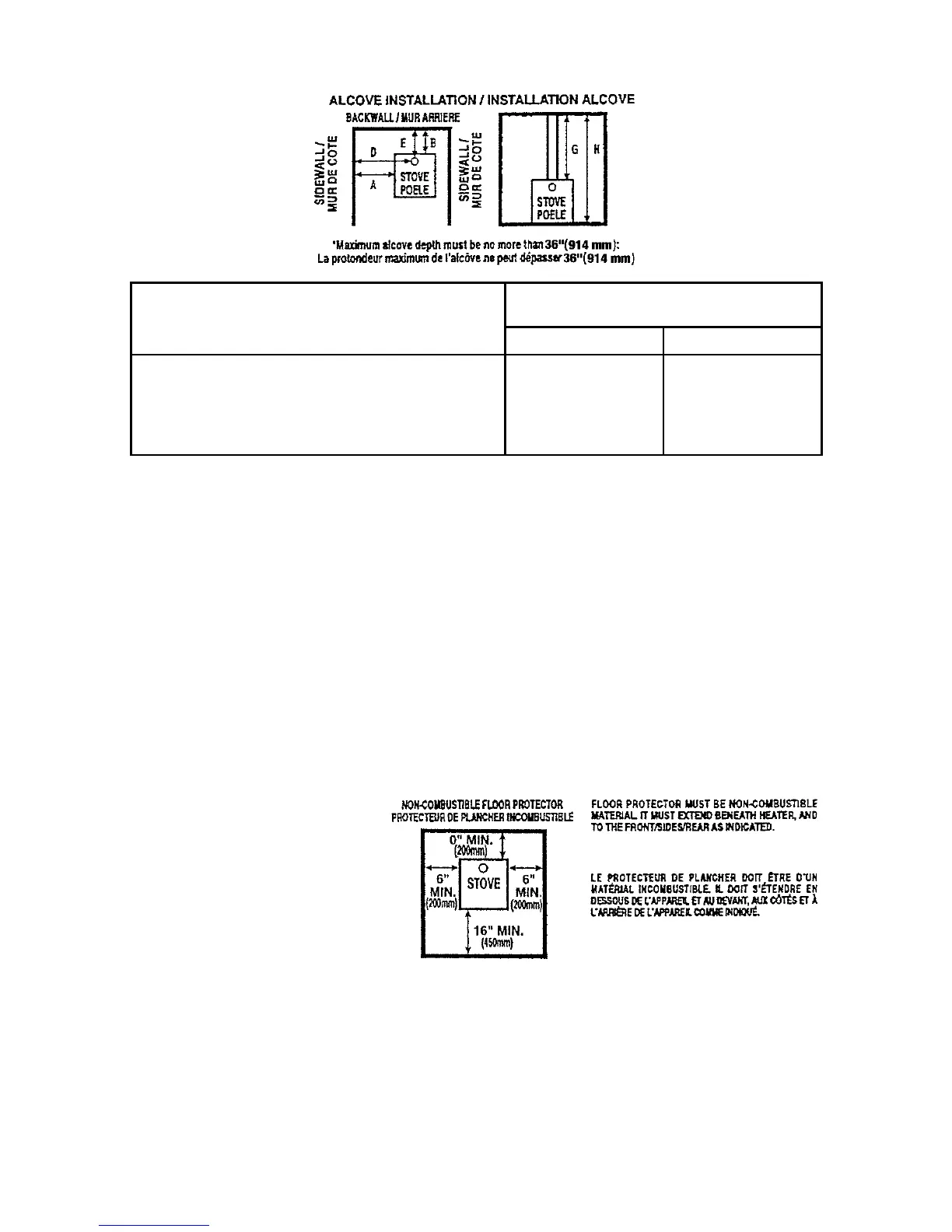 CLEARANCE REQUIREMENTS ALCOVE INSTALLATION