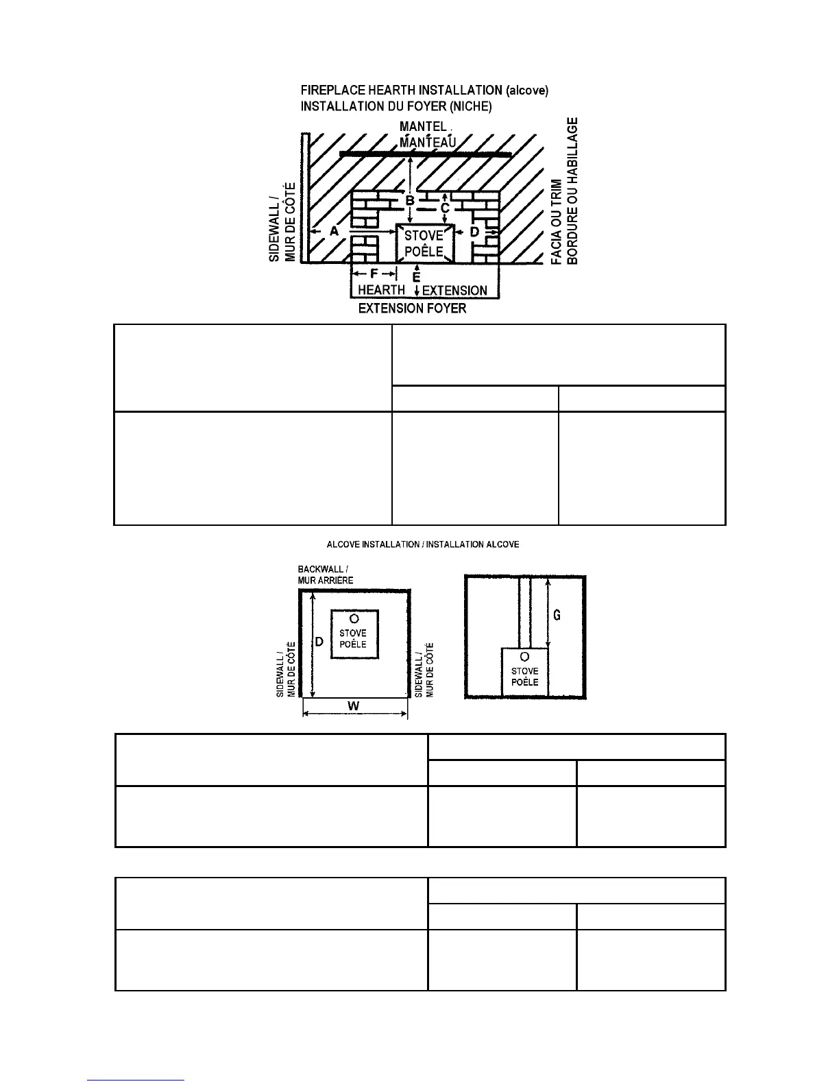 CLEARANCE REQUIREMENTS ALCOVE INSTALLATION
