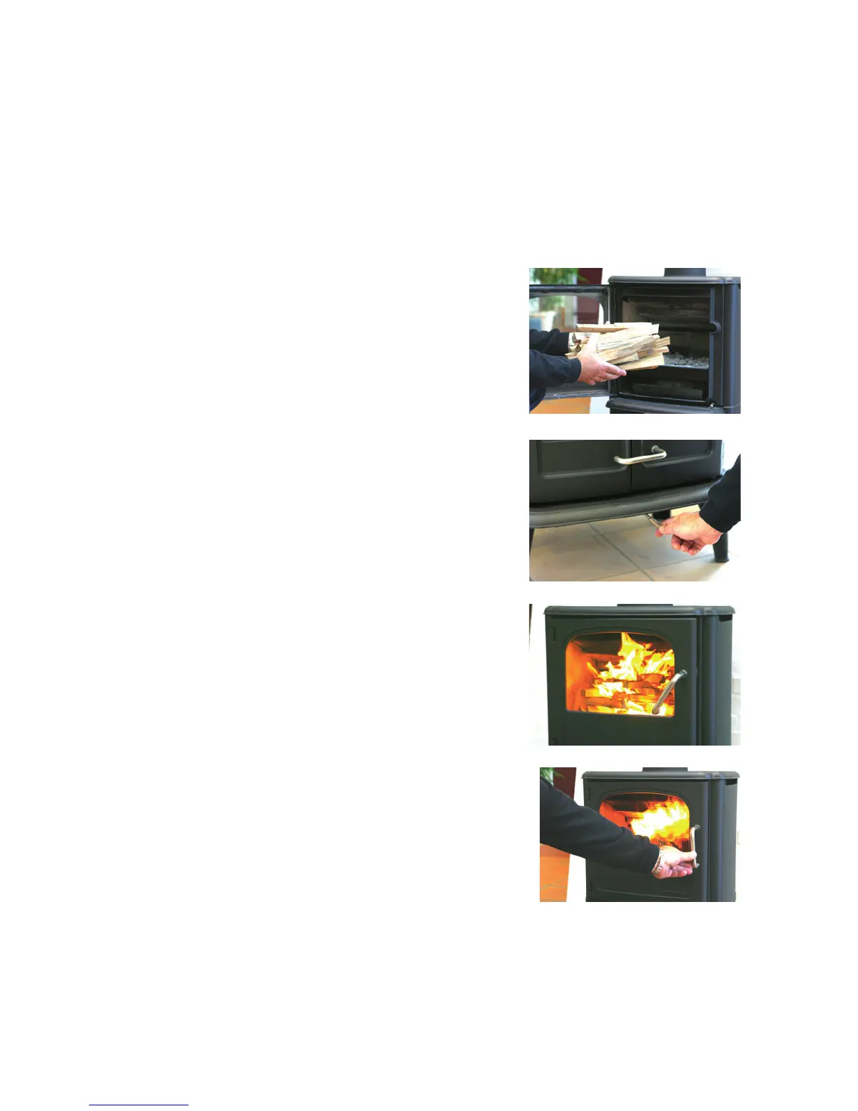 Wood fuel burns well when placed onto an ash bed on the grate of the stove. To achieve this