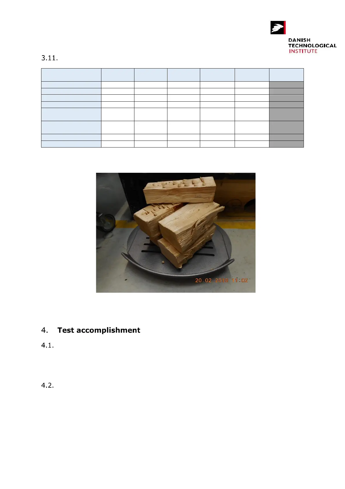 procedure (please find enclosed in appendix 9), the ASTM E3035-15 Cordwood test standard, the