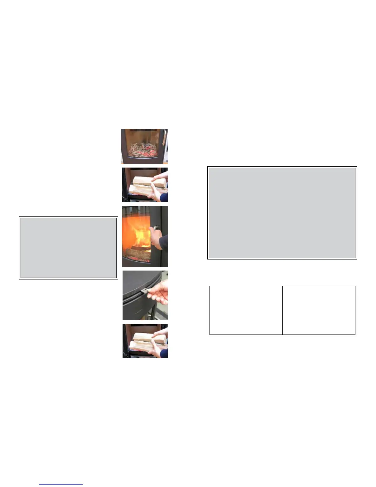 5. Normal påfyring bør ske, mens der endnu er gløder tilbage.