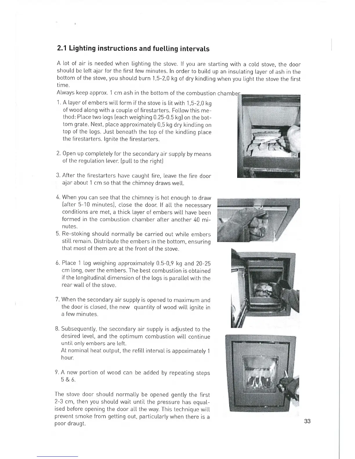 Morso S81-90 - Lighting Instructions and Fuelling Intervals