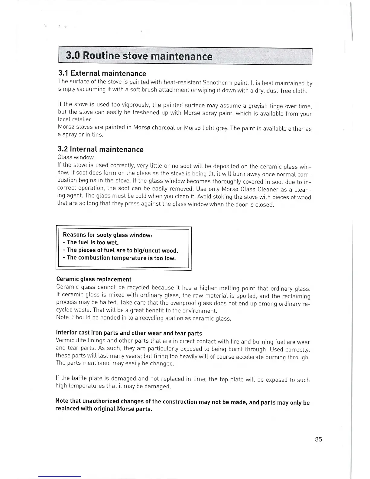 Morso S81-90 - Routine Stove Maintenance; External Maintenance; Internal Maintenance; Ceramic Glass Replacement