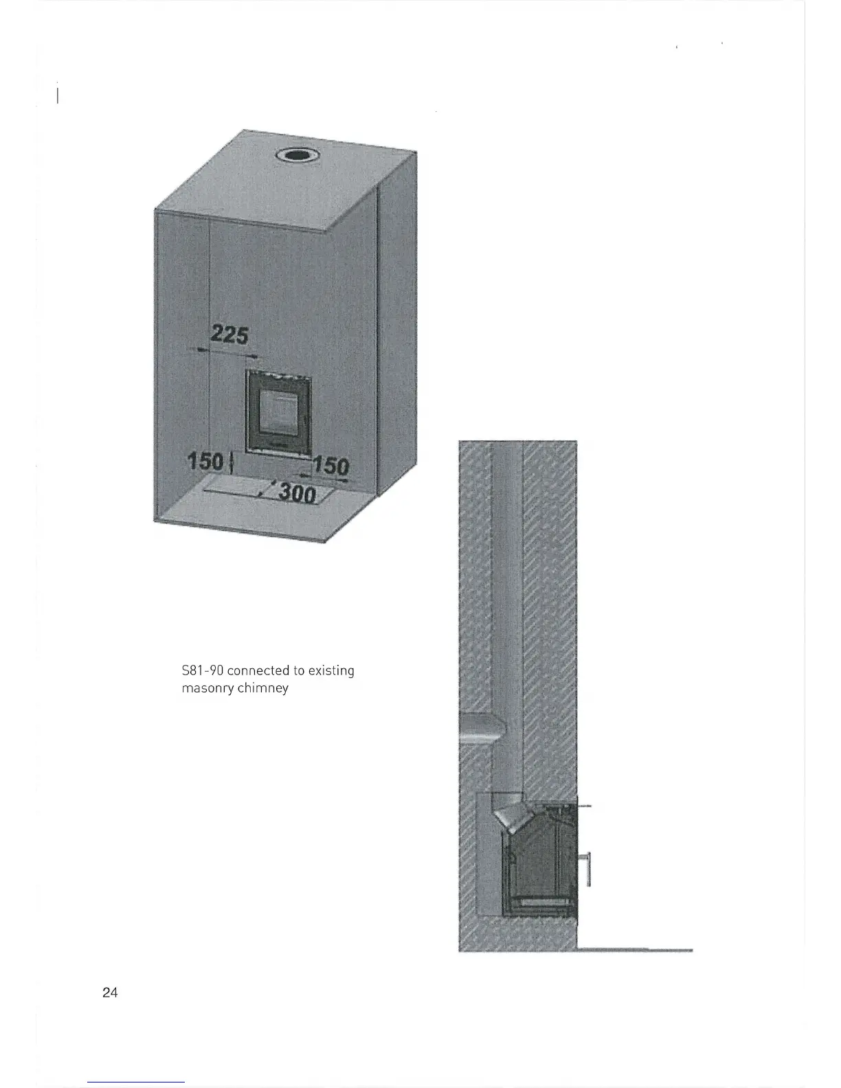 Morso S81-90 - Product View; Connected to Existing Masonry Chimney