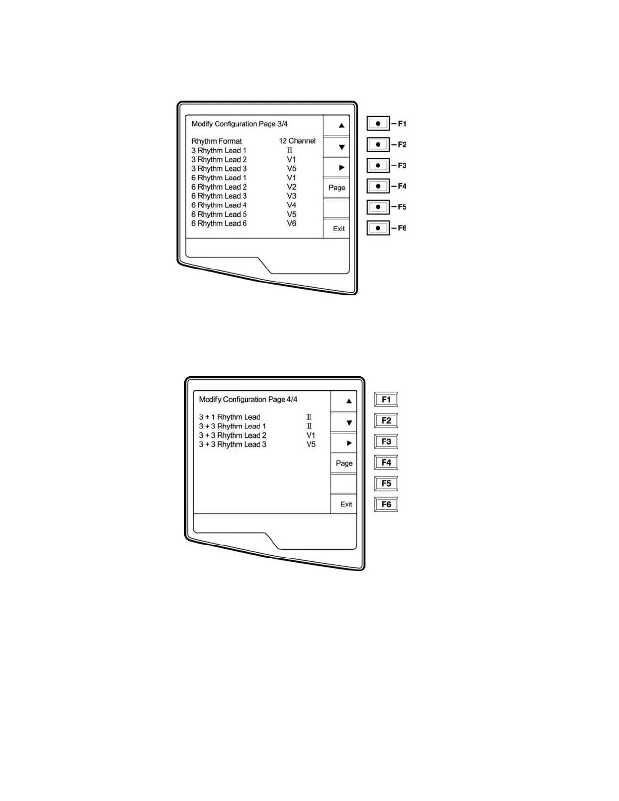 and the three 10-second rhythm leads for the 3+3 channel ECG printout. Use (F3) to make your selection of any of