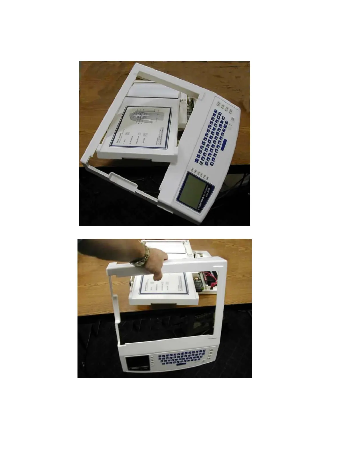 Slide top cover off the unit, rotating as needed to clear the writer door.