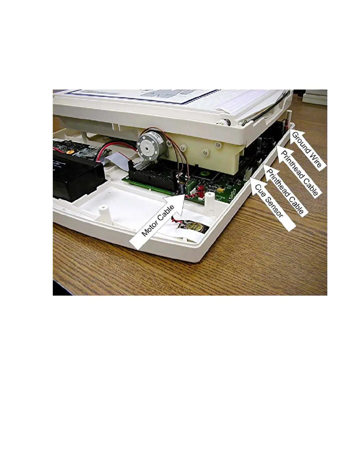 be removed, 2 print head cables, 1 cue sensor cable, 1 print head ground cable and the writer motor cable.