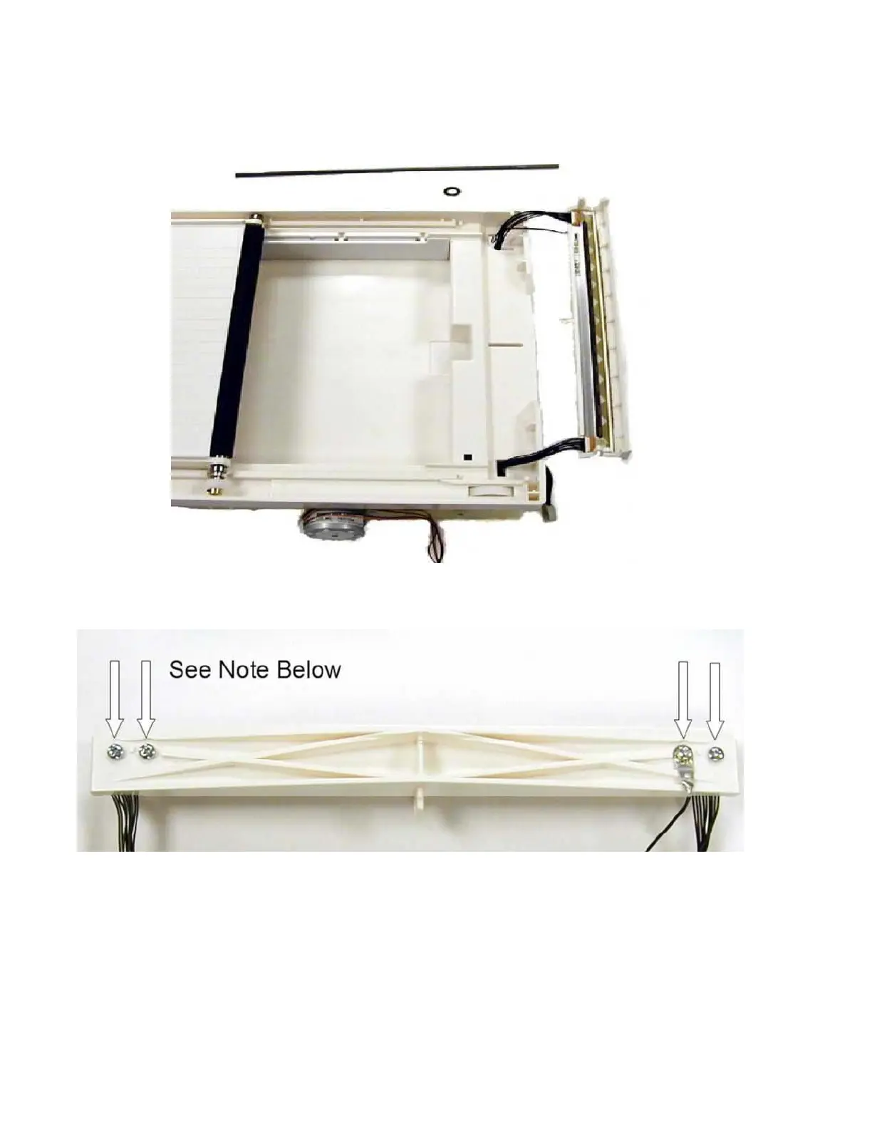 Remove the cables attached to the printhead. Please note that on early units the cables are secured to the print head
