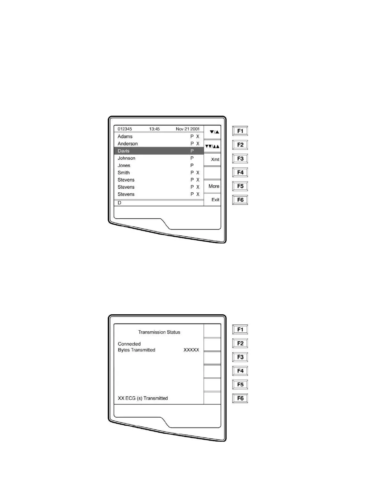 To transmit one ECG, select F2 (Selec) to choose a record from the patient directory.