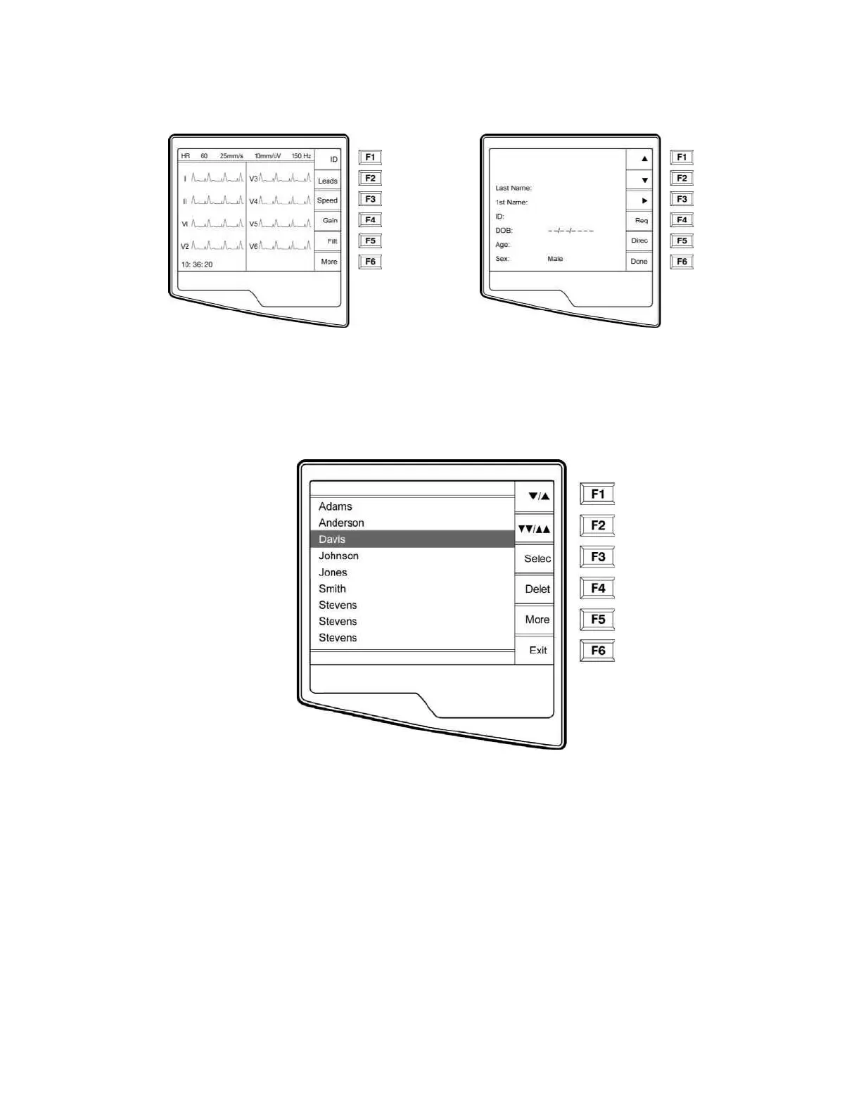 When the Request List has been downloaded, you may select the patients who need ECGs. Select ID (F1) from the