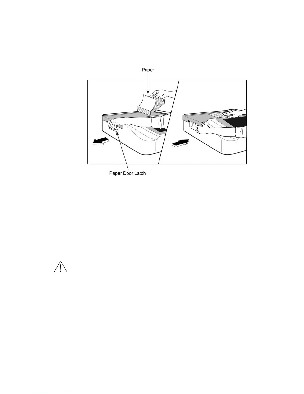 evenly within the channel of the paper door. If paper is not manually advanced evenly, risk of jamming or