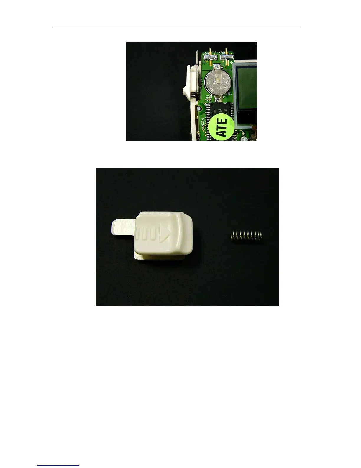 Battery door latch, item #4 and spring, item # 16