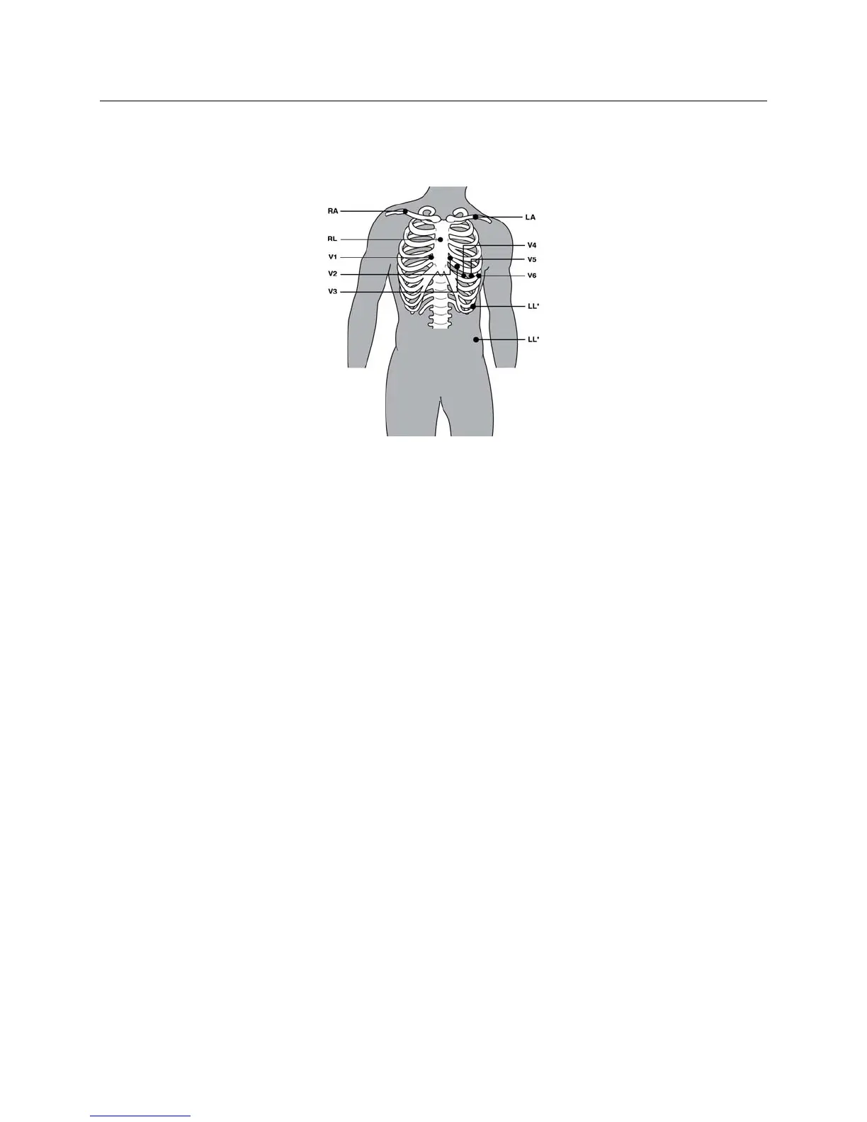 Mason-Likar position) or lowest rib on the left side of chest (modified Mason-