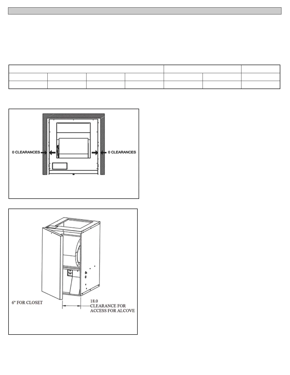 Model Top (in/m) Back (in/m) Sides (in/m) Alcove (in/m) Closet (in/m) Duct (in/m)