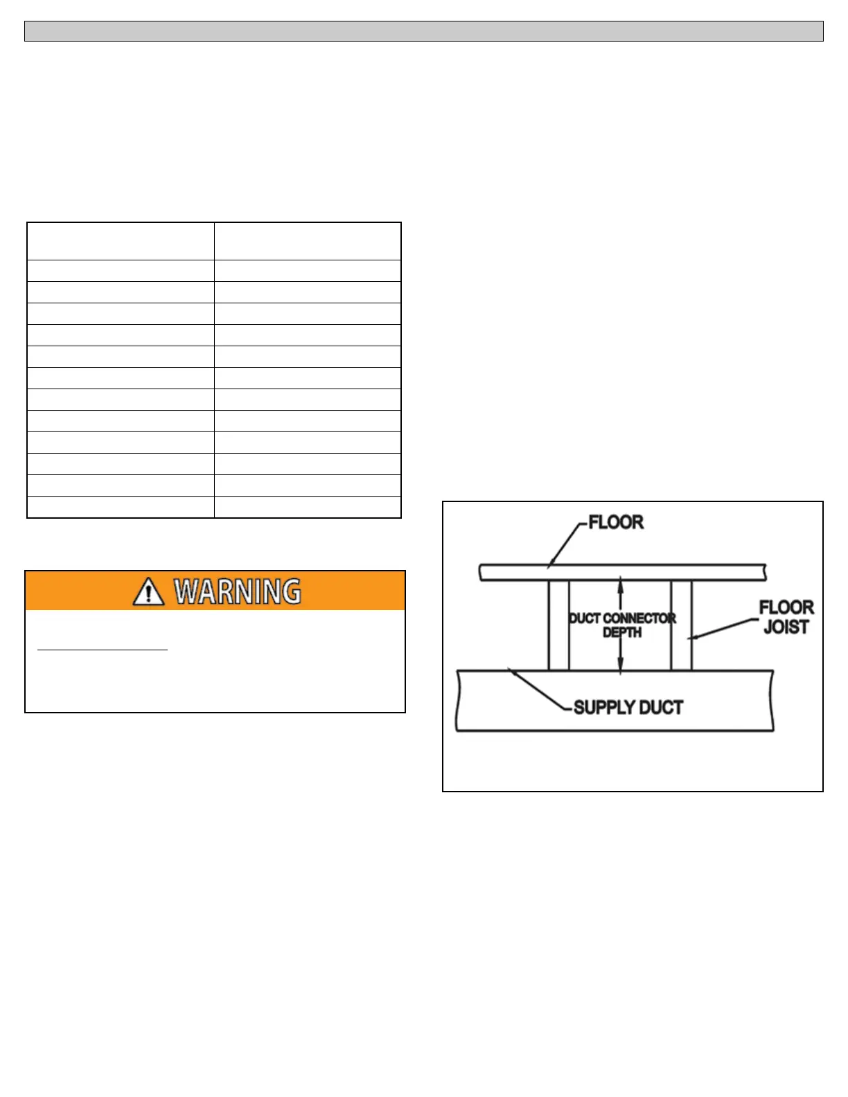 the combustible floor. Table 5 shows the duct connector needed