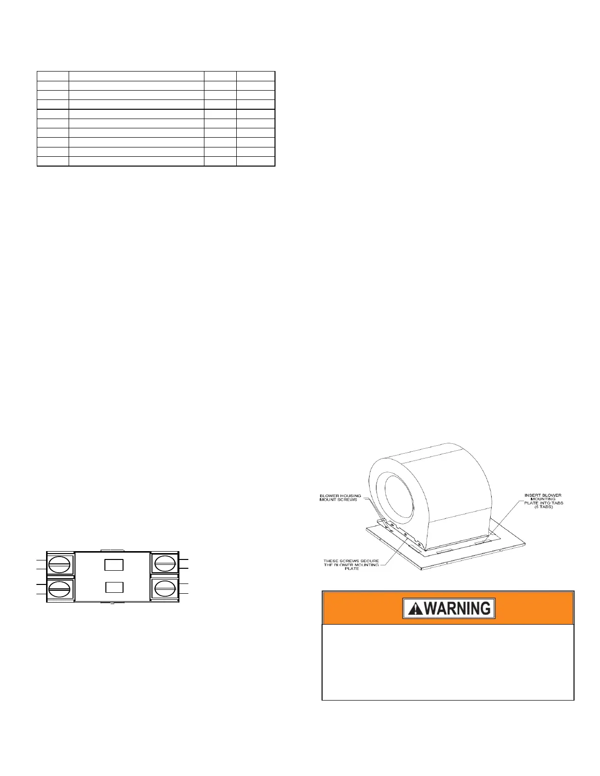 contact with moving parts, such as the blower wheel. This