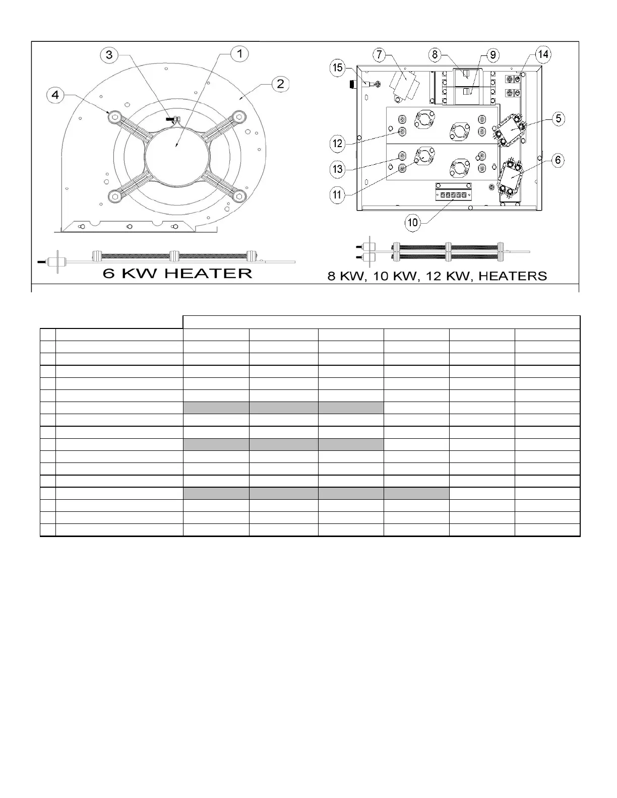 Table 8: Replacement Parts for Electric Heat Models with a 1/2 HP Constant Torque Blower Motor