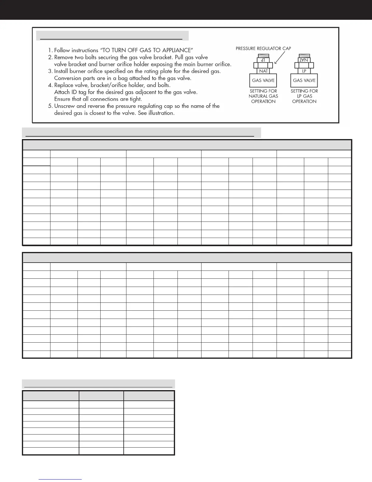 GAS VALVE CONVERSION INSTRUCTIONS