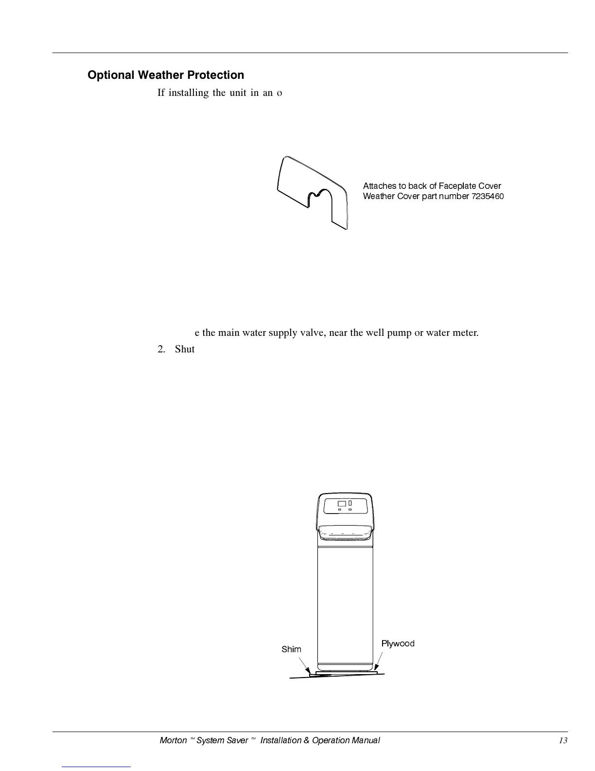 $Q RSWLRQDO :HDWKHU &RYHU LV DYDLODEOH IRU RXWGRRU LQVWDOODWLRQV E\ FDOOLQJ :$7(5 RU