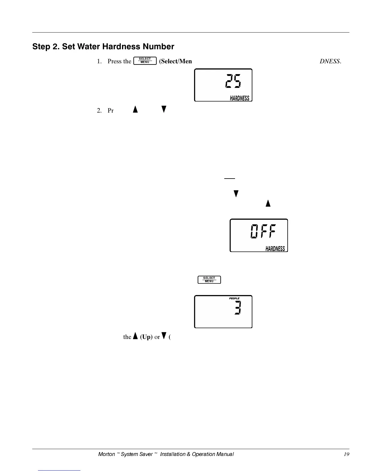 3UHVVWKH 8S RU 'RZQ EXWWRQV WR VHW \RXU ZDWHU KDUGQHVV QXPEHU