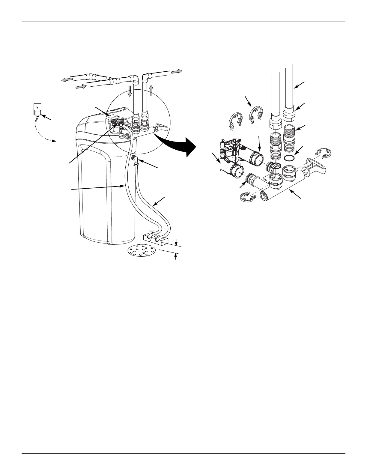softener valve assembly. Set them aside to prevent