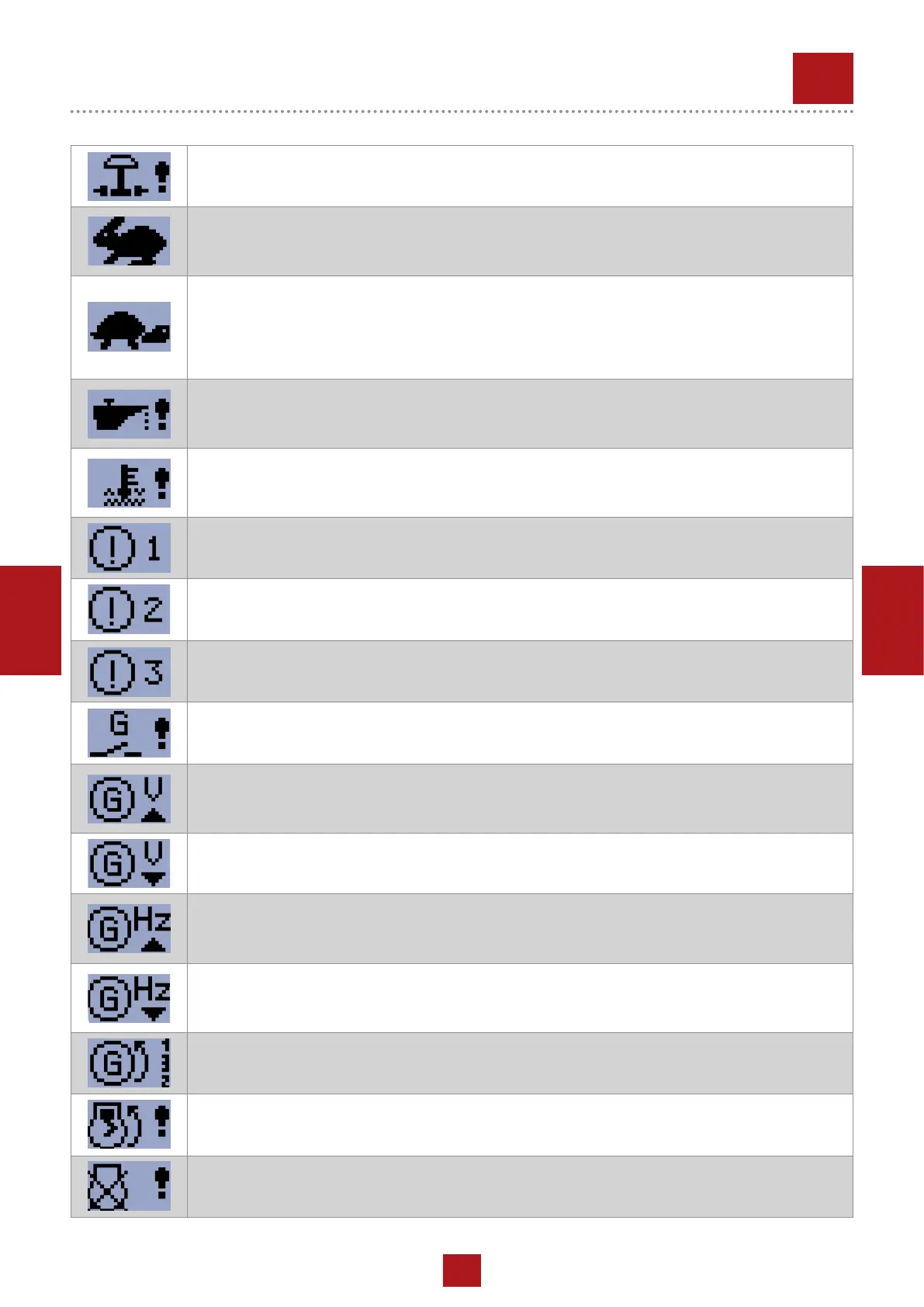 Niedrige Motordrehzahl. Dieser Alarm wird ausgegeben, wenn das Stromerzeugungsaggregat läuft und