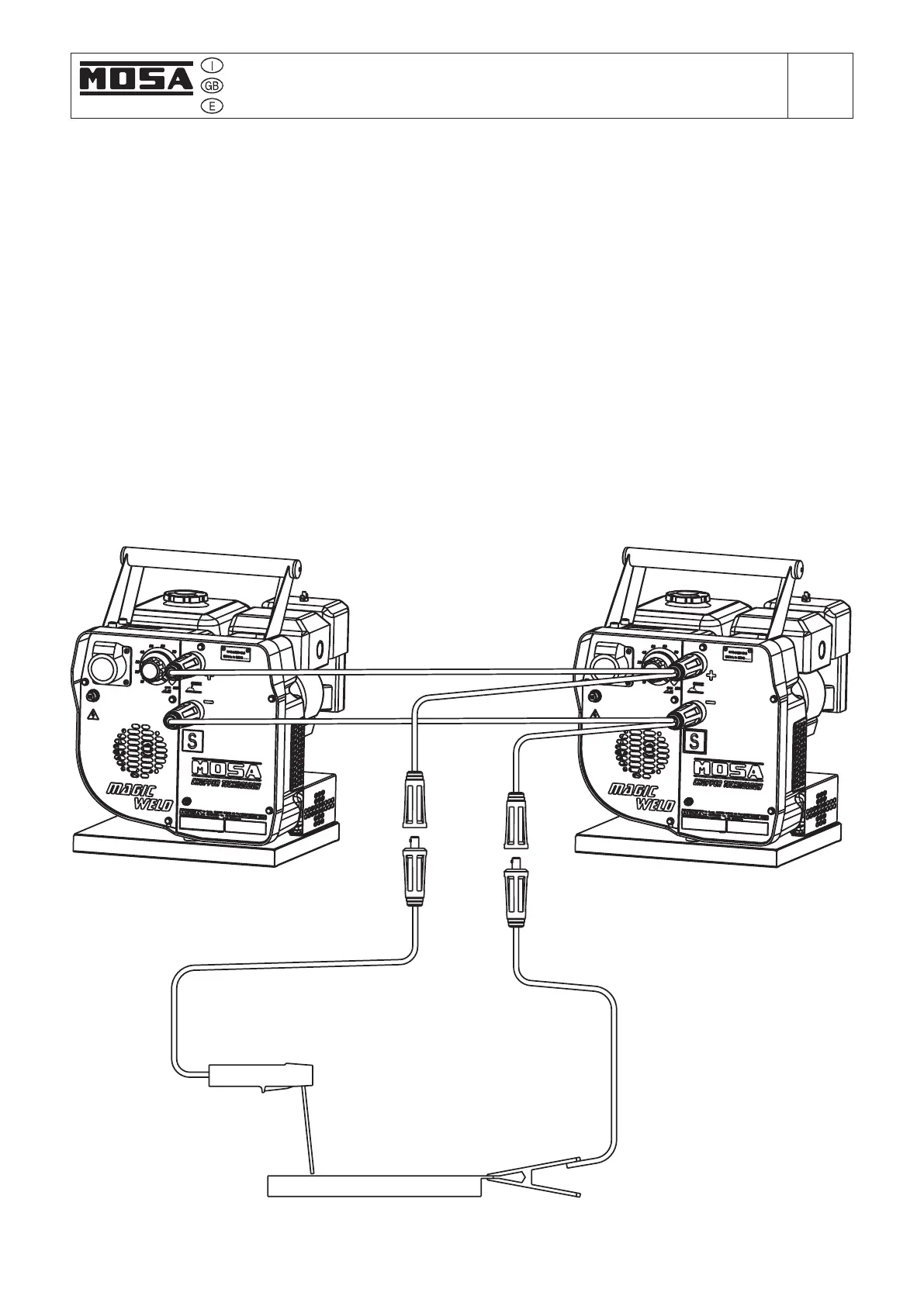 from the front panels of the machines connect the two positives welding sockets(+) between