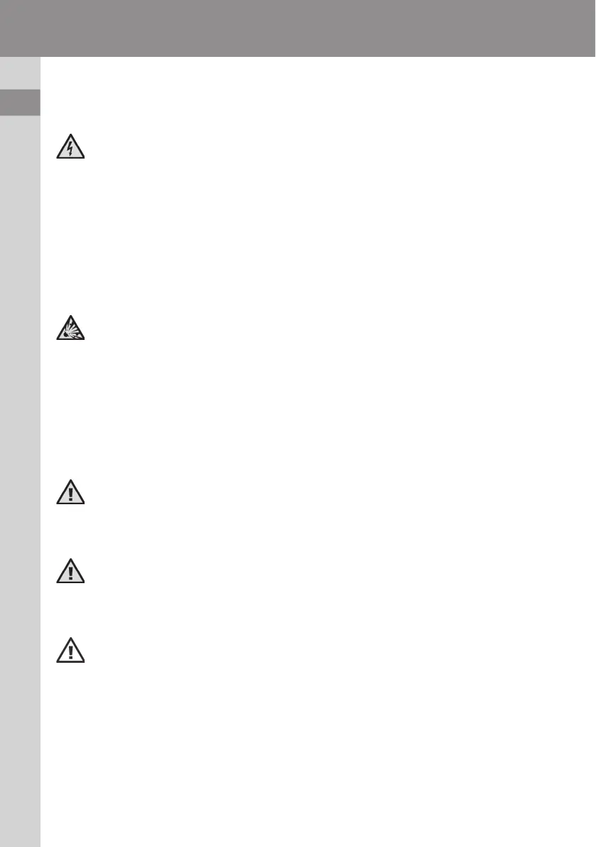 Gefahr! Stromschlag durch eintretende Flüssigkeit.