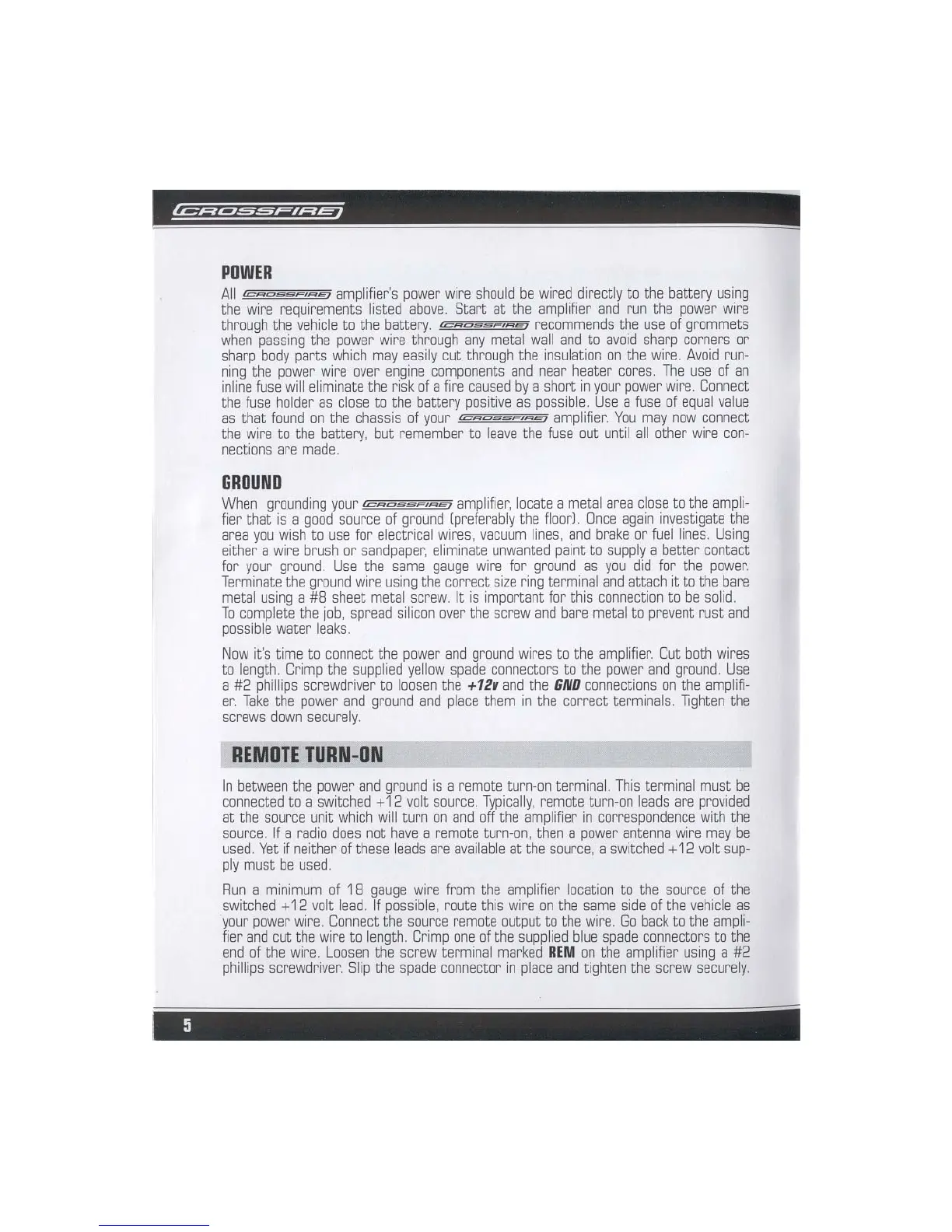 Mosfet Power Crossfire CFA404 - Power Wiring; Ground Connection; Remote Turn-On Connection