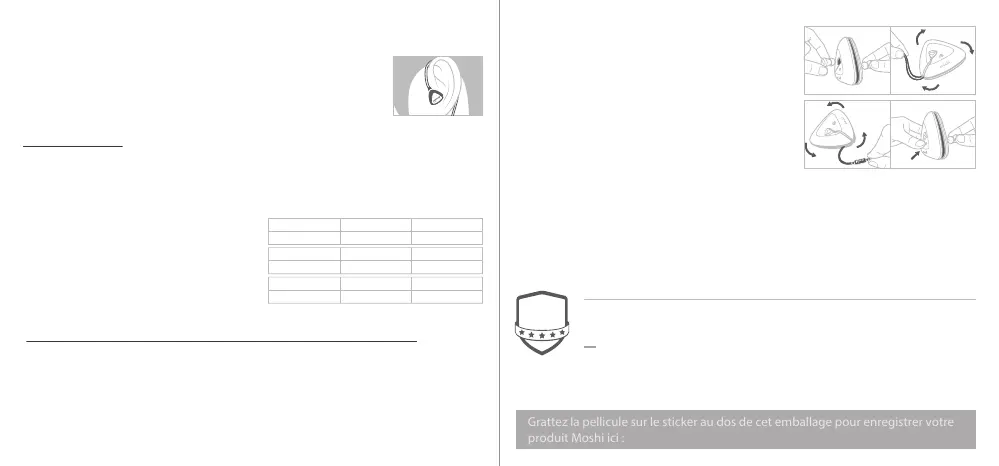 écouteurs en faisant passer les câbles derrière vos oreilles.