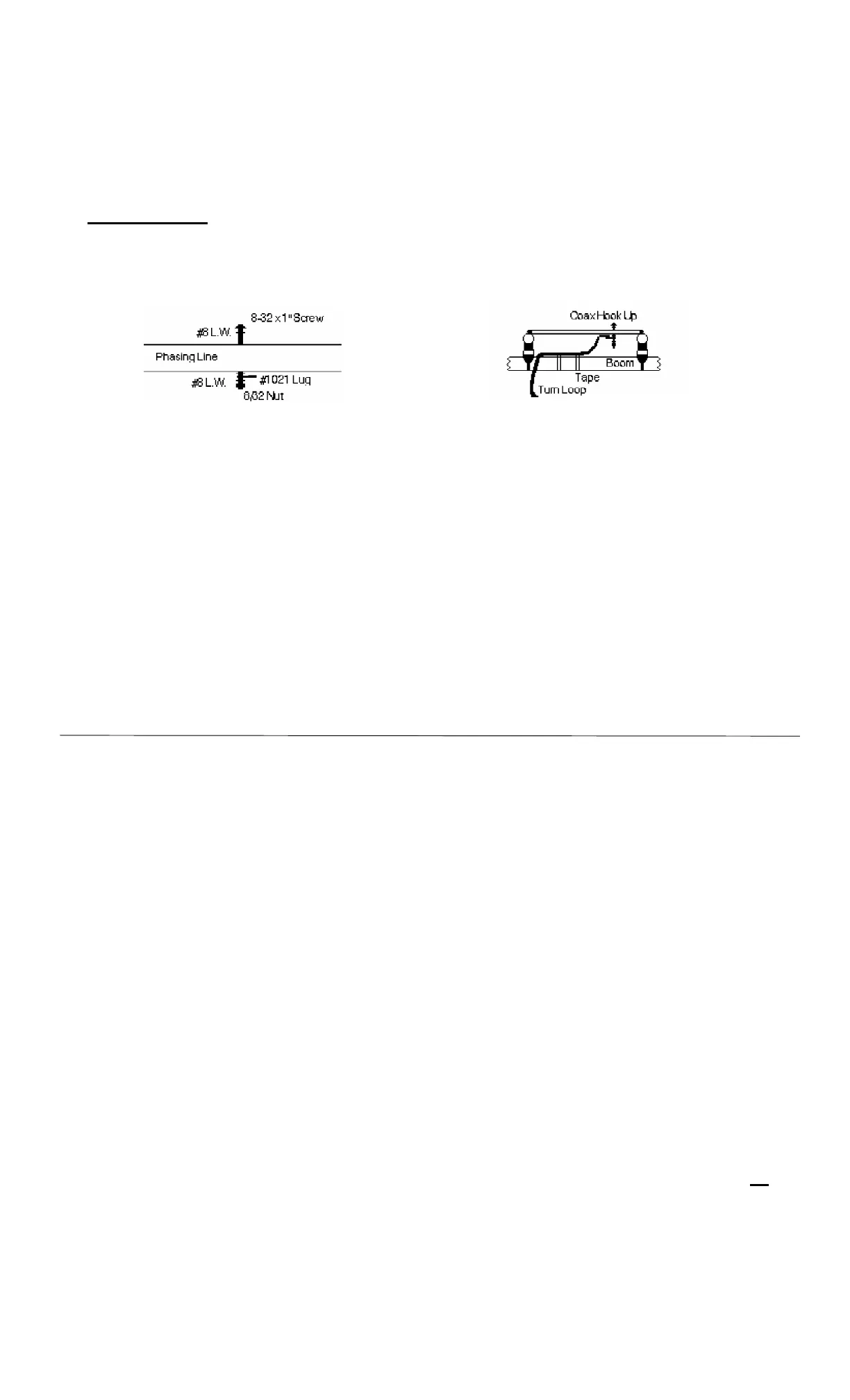 < > Place the #1021 Solder Lug with the "Center of the Coax" on the bottom side of the phasing line. Secure it to the