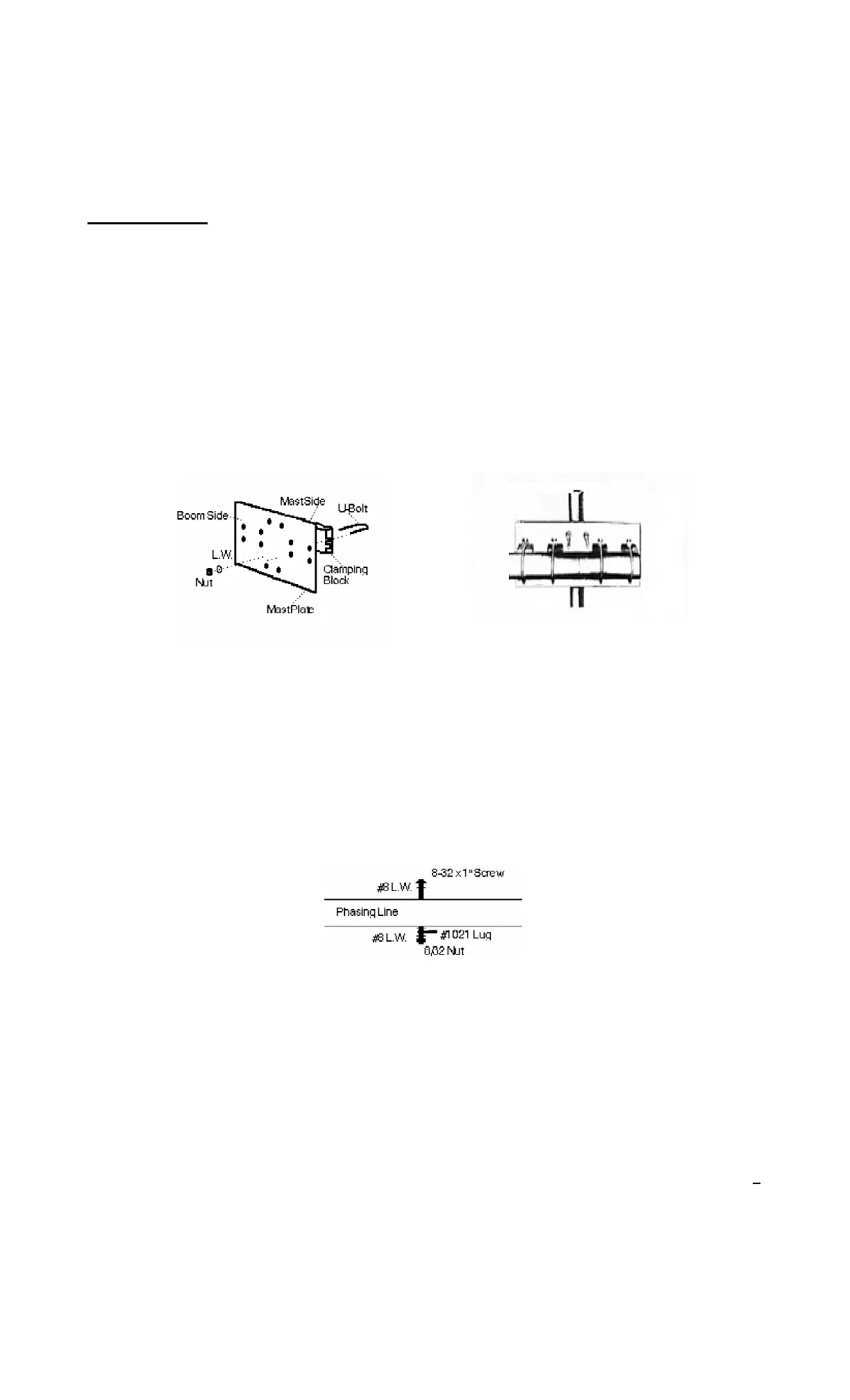 < > Place the 8/32 x 1" screw, lock washers, and nut to each side of the phasing lines. (Parts 29, B, C). Set