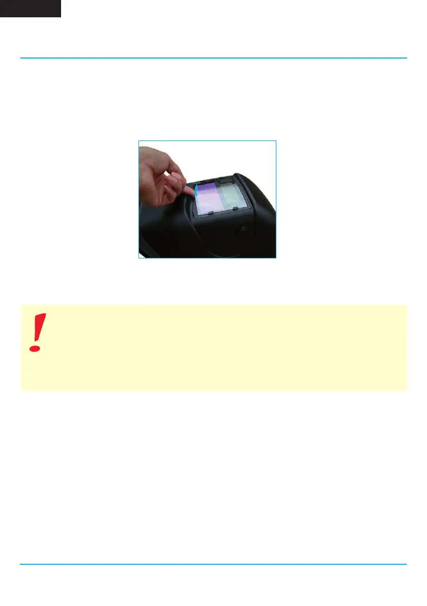 Priešingu atveju skydelis negali būti naudojamas suvirinimo metu. Prieš įdedant naują
