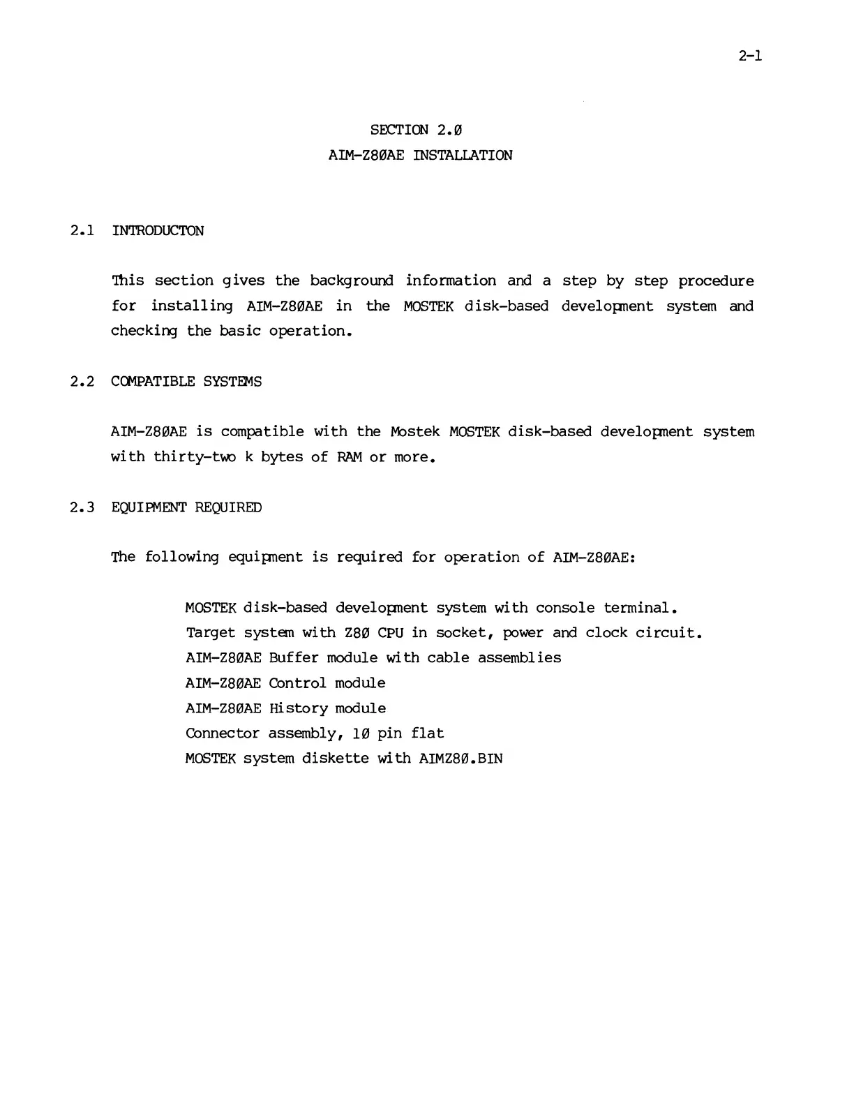 Mostek z80 - AIM-Z80 AE Installation Guide; Installation Introduction