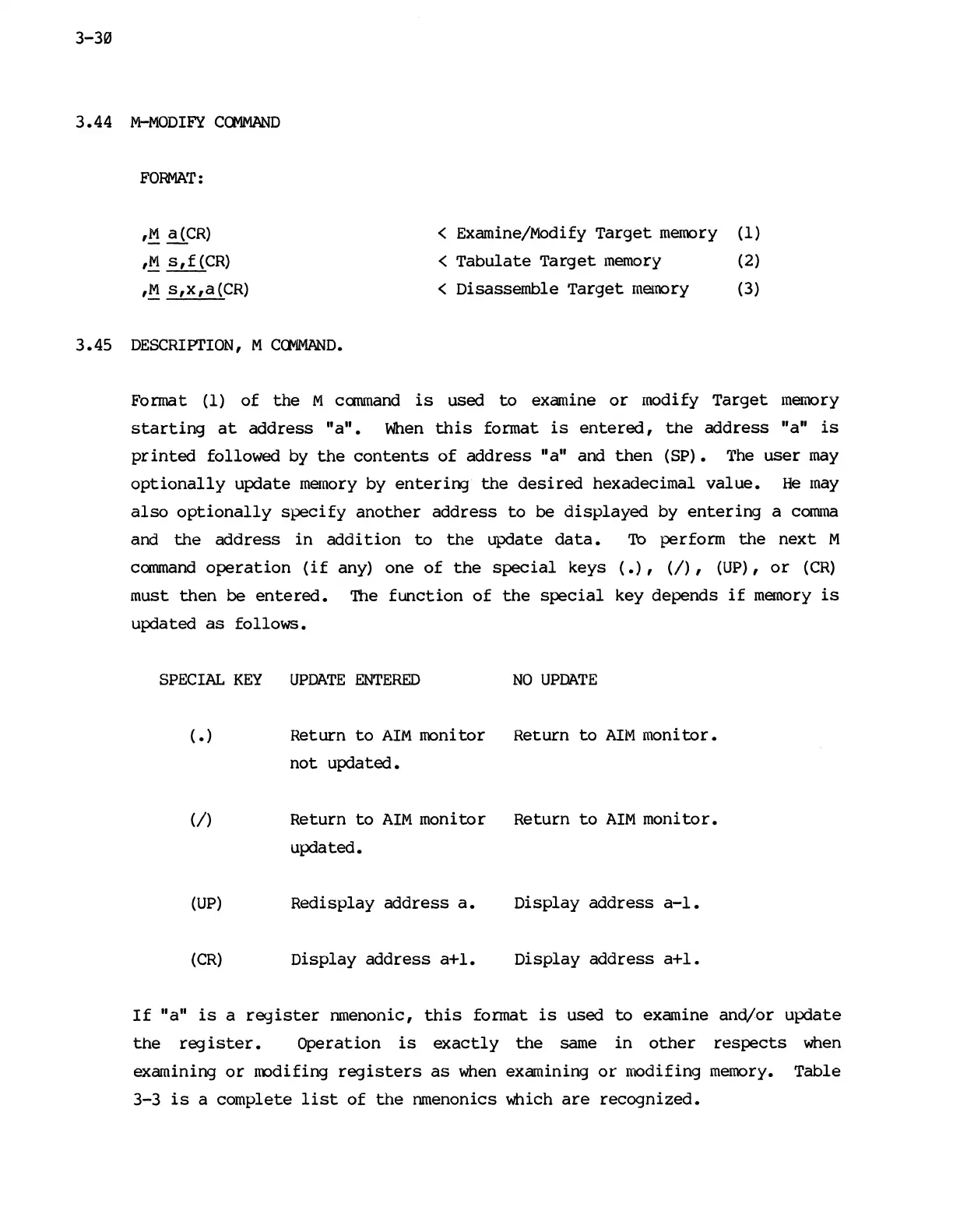 Mostek z80 - M-Modify Command; Description of M Command