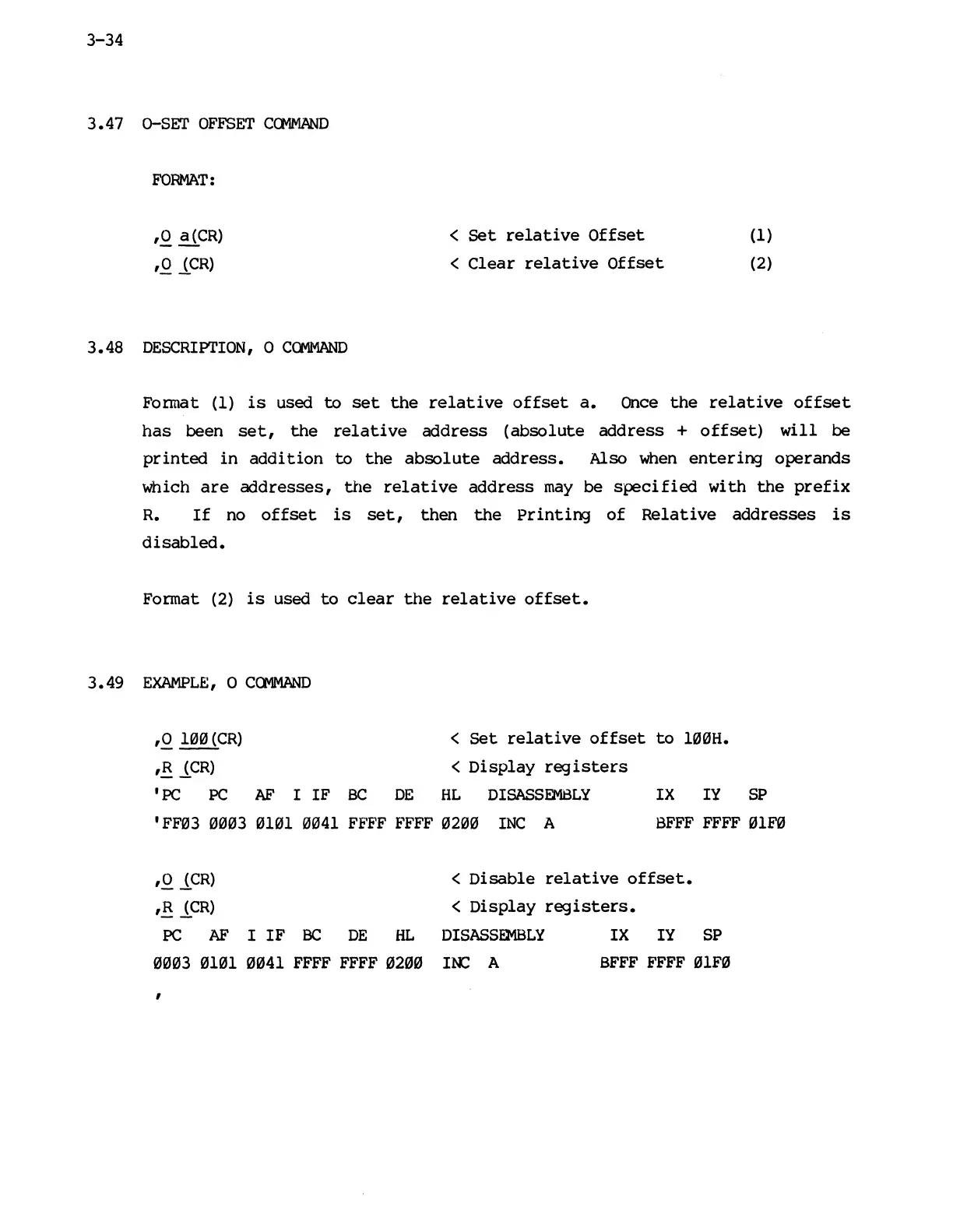 Mostek z80 - O-Set Offset Command; Description of O Command