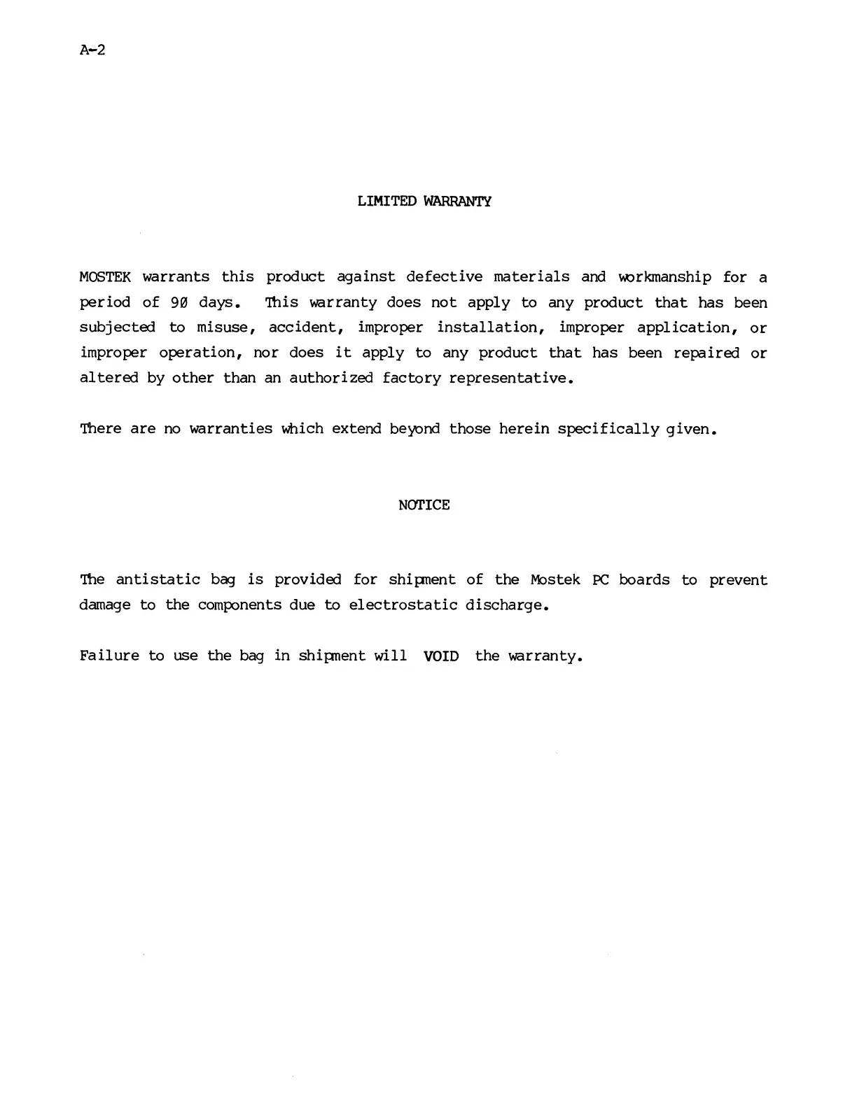 Mostek z80 - Limited Warranty Information; Important Packaging Notice