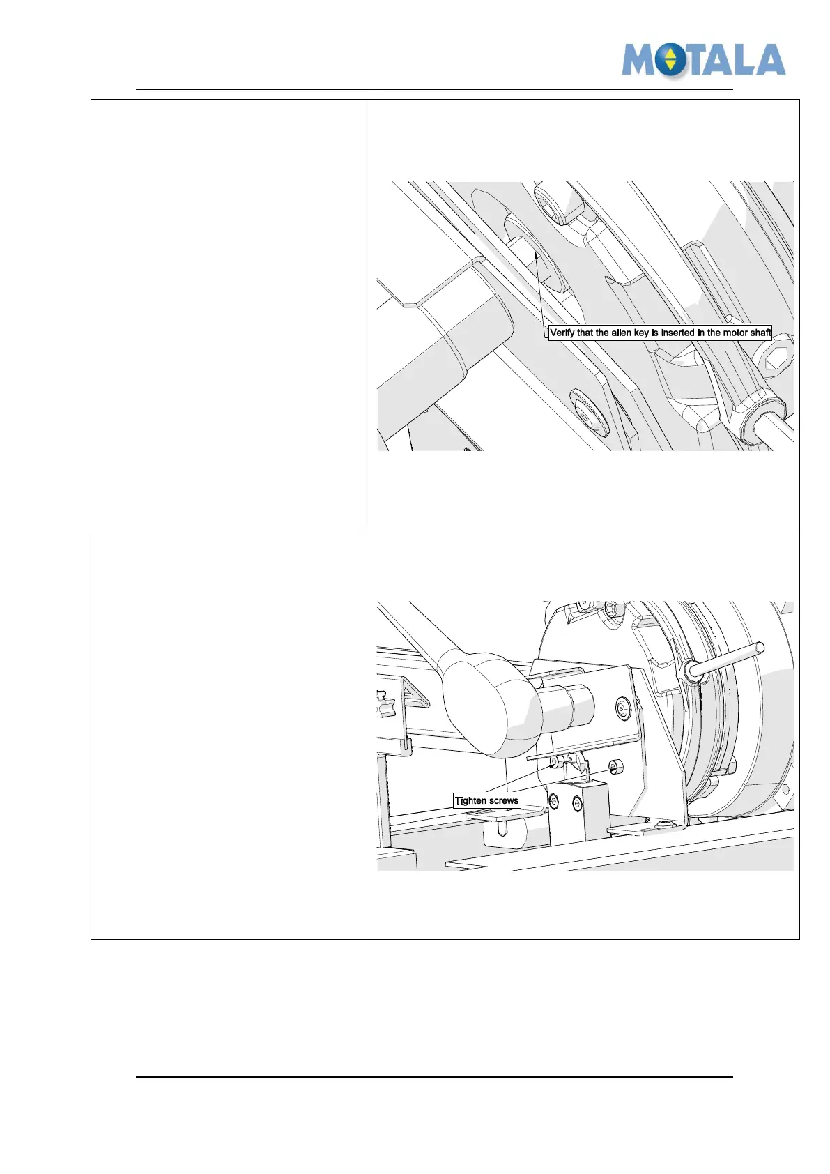 Motala MC2000 - Insert the allen key in the motor shaft; Fix the adjusted hatch