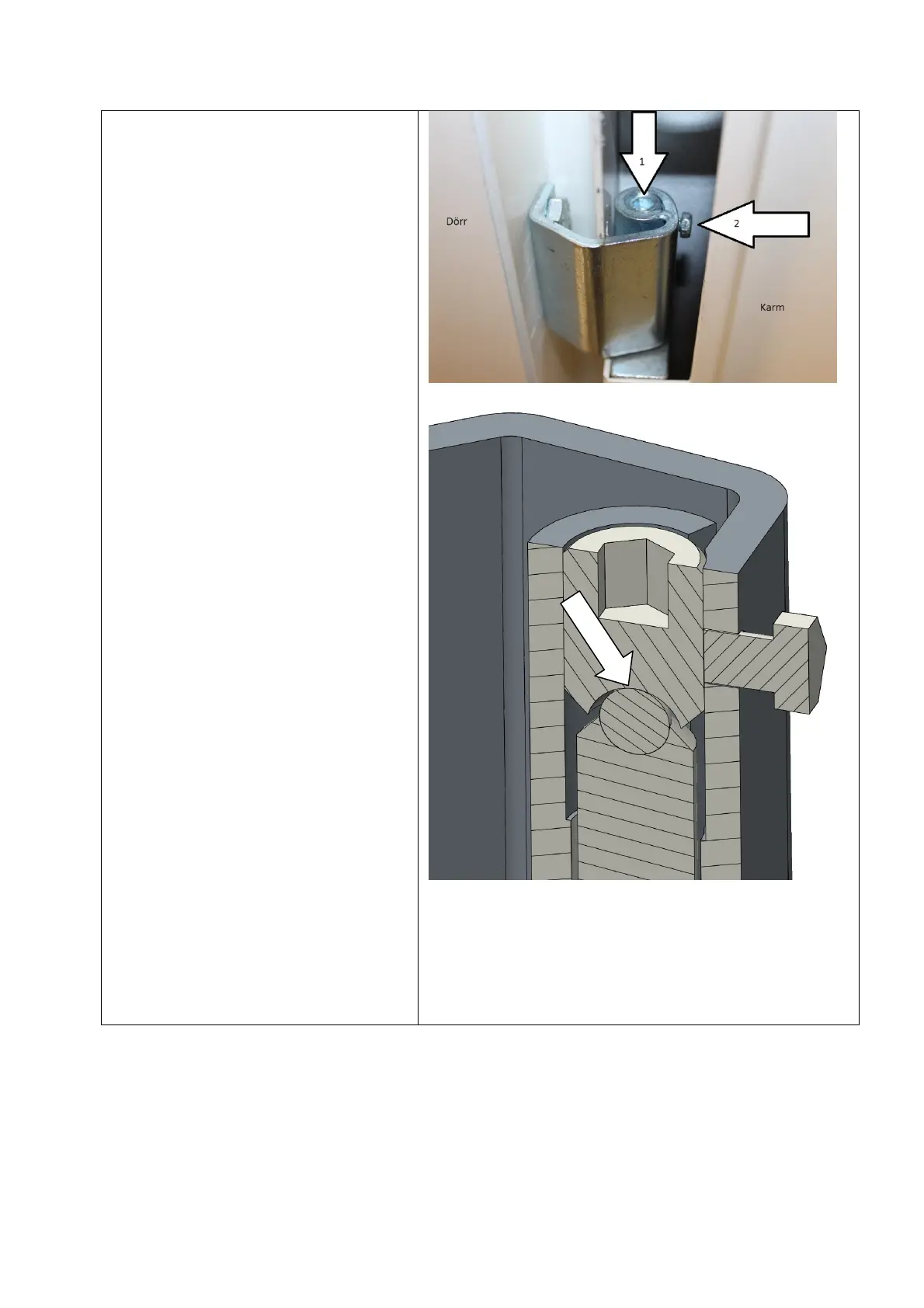 Both the upper and lower hinge must be adjusted so